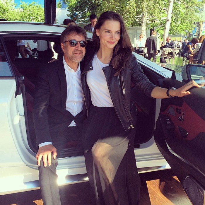 Телеведущий Леонид Ярмольник и актриса Лиза Боярская в официальном транспорте ПМЭФ-2014, автомобиле «Мерседес». Компания привезла из Москвы 350 новых моделей S- и Е-классов. После форума эти машины отдадут в салоны и распродадут со скидкой.