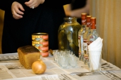 В поэме главный герой Веничка пытается сбежать на поезде из Москвы в Петушки, по дороге ведя философские беседы с попутчиками под традиционный русский спиртной напиток. Он впадает в тяжелое забытье и осознает это, только когда электричка возвращается обратно. Больше в себя он не приходит. Для режиссера же не он пьян, а пьяны все вокруг. Вещь в постановках Сергея Женовача всегда играет весомую роль: все действие главный герой находится под большой люстрой из бутылок, которая символизирует тяготы его существования и не дает отыскать желанные Петушки.