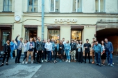 Очередная барбершоп-локация расположилась в уютном дворе-колодце, о существование которого, кажется, не догадывались даже завсегдатые самой «выходной» улицы города. Небольшое помещение с несколькими креслами для работы и внушительной барной стойкой довольно быстро исчерпало лимит свободного места. Под сеты Гамлета Мовсисяна и Женя Литвяка, большая часть вечеринки перетекала во двор и стала по-настоящему питерской. Пунш от Глеба Грозного и Влада Кудрявцева, команды SOLID & LIQUID из Бара 812, аномально летний вечер, полный «колодец» друзей и весь спектр модных мужских образов. Общество острых проборов представлял музыкант Никола Мельников, в рядах бородачей были замечены Иван Верейн и бизнесмены Александр и Вячеслав Смолкины, ну а фотограф Сергей Мисенко на пару с Алексеем Комовым (Dj Kosinus) в очередной раз демонстрировали пример элегантно-небрежной патлатости.