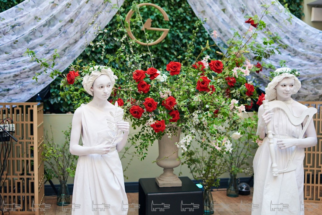 В честь трехлетия Dom Boutique декораторы разбили в отеле сад по образу и подобию Летнего. Реплика удалась: на красной ковровой дорожке гостей приветствовали муза поэзии Эвтерпа с арфой в руках и богиня весны Флора, как говорят, прибывшая с гигантскими цветочными инсталляциями.