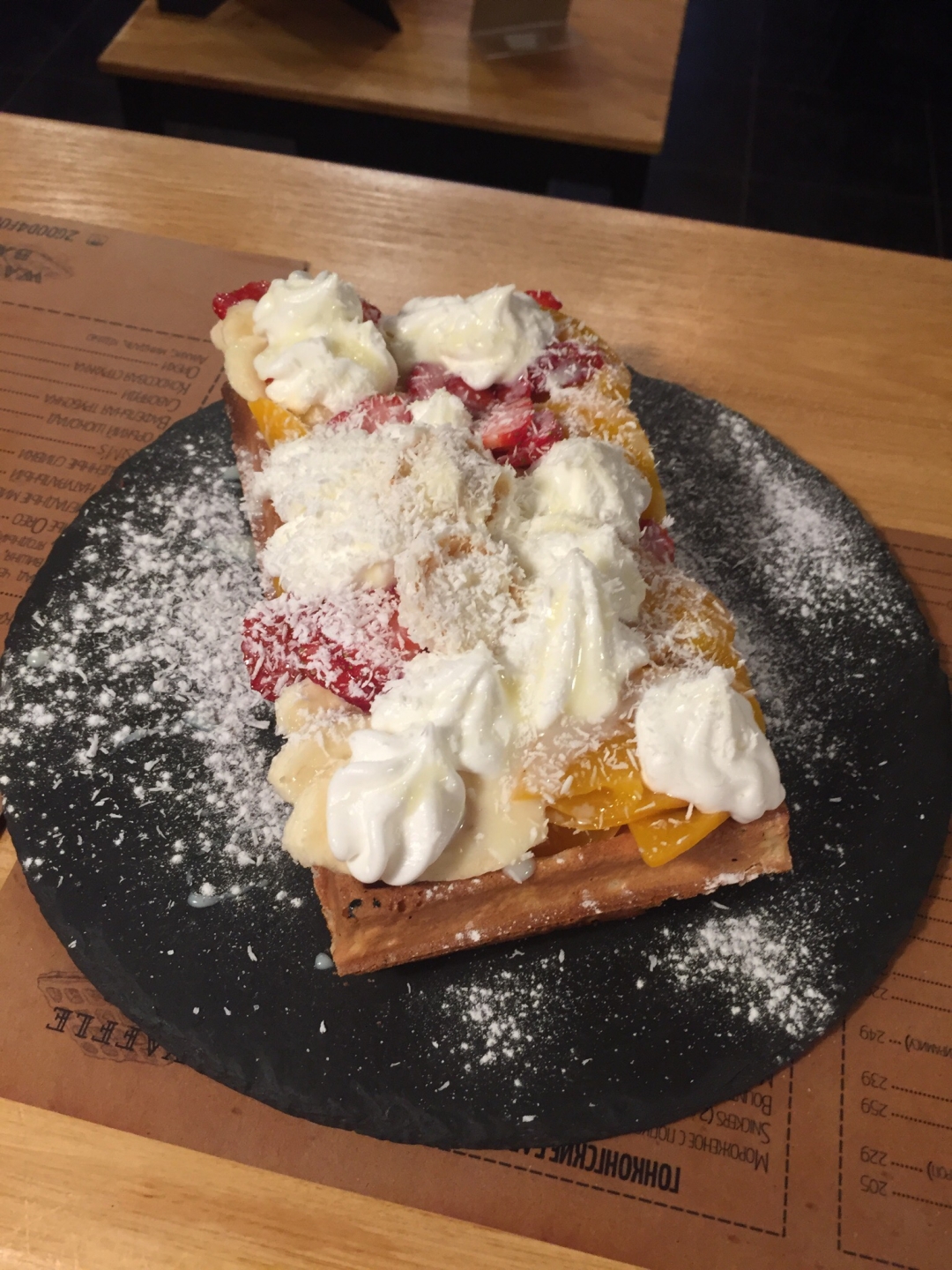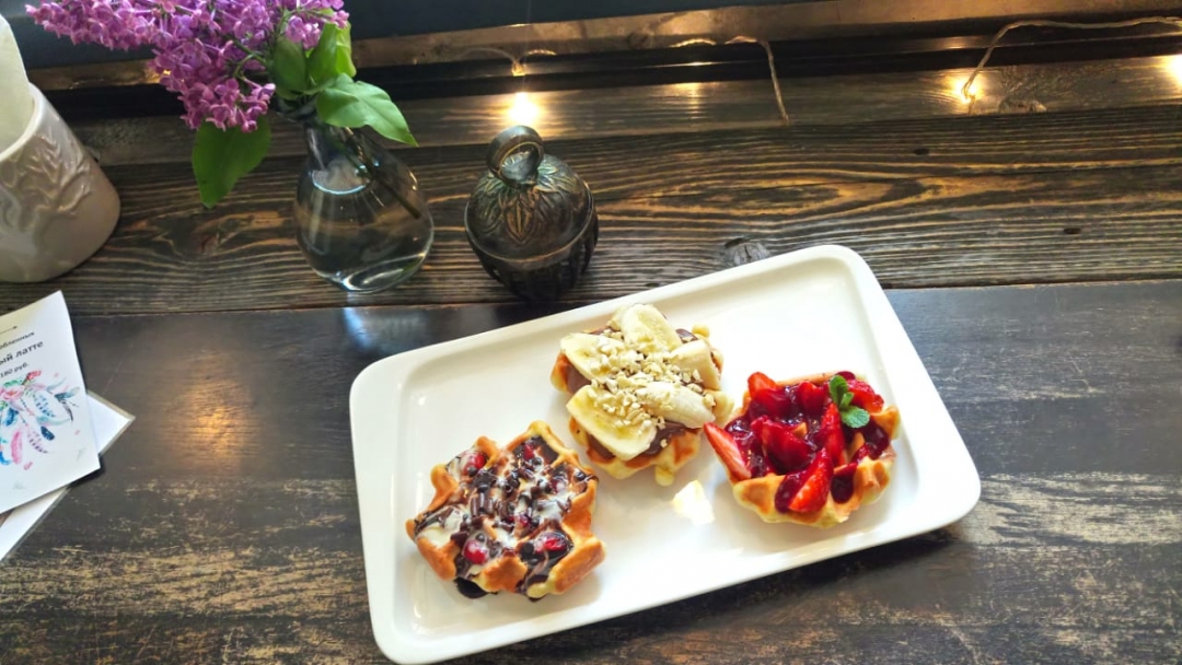 Помимо сытных вафель тут можно найти ценные экземпляры литературы. Чего только стоит «Искусство лежать» – запросто может стать настольной или, скорее, прикроватной книгой. В меню есть миниатюрные вафли с разными начинками, бельгийские – стандартного размера, а также фруктовые салаты. Съесть вафлю под названием «Джон Сноу» можно на летней веранде.
