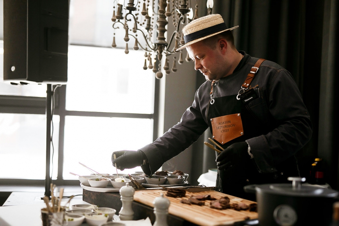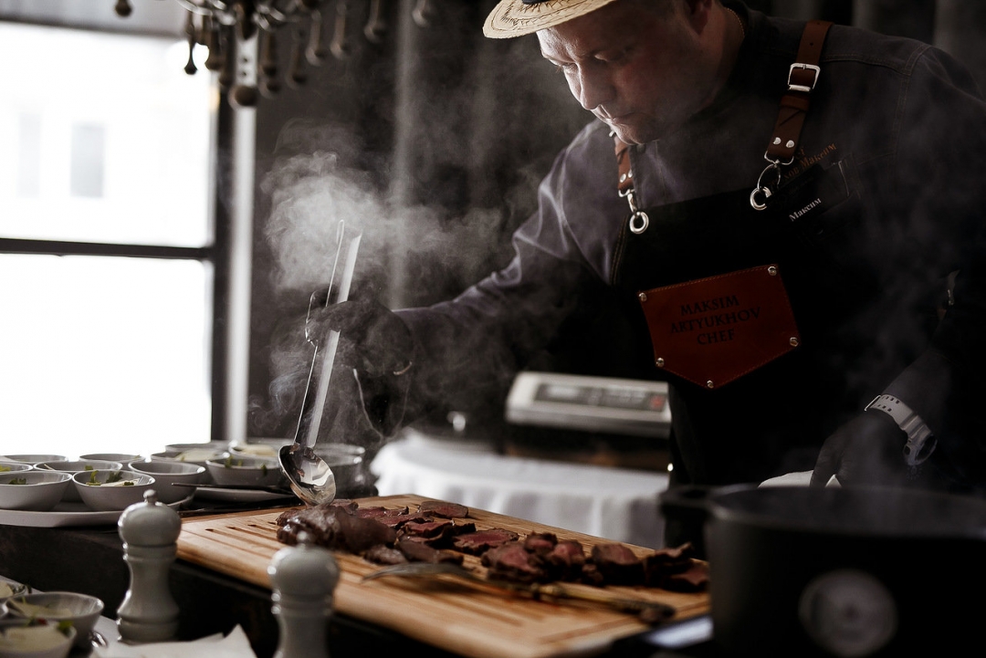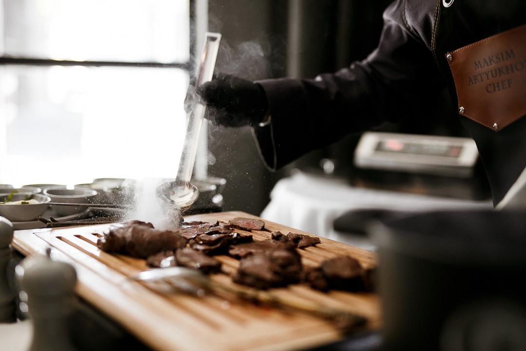 В меню вошли: тар-тар из желтоперого тунца с арбузом и авокадо, краб julienne в сливочном соусе, стейк шатобриан с рукколой и ремесленным сыром с пажитником, фаршированный перепел со свекольным ризотто и сыром Блю, а также «Шу» с фундучным кракелином, шоколадным муссом и гречневым макарон.