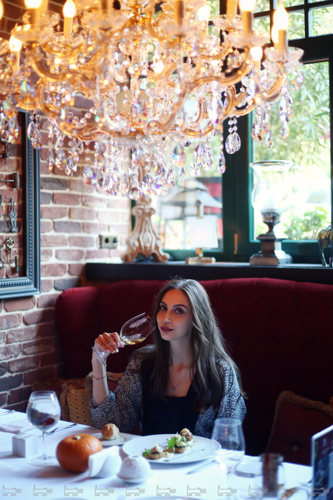 Осенний декор перед входом, сервированные столы и тихая классическая музыка наполняют зал атмосферой светского приема и одновременно уединенного времяпрепровождения. Выбираю столик под самой массивной хрустальной люстрой, не уступающей по красоте паникадилам из Зимнего Дворца. В бокале с водой – красивая синяя рыбка, называется она бойцовой, в Азии участвует в турнирных боях, а здесь – для красоты и созерцания only.