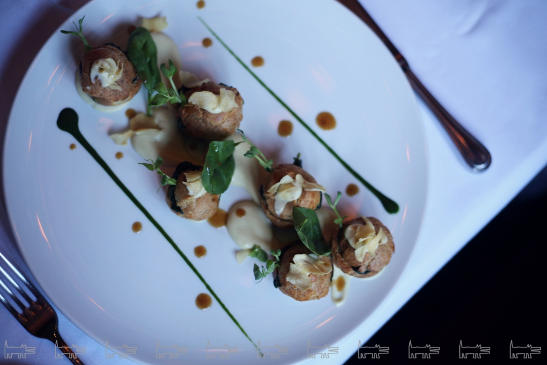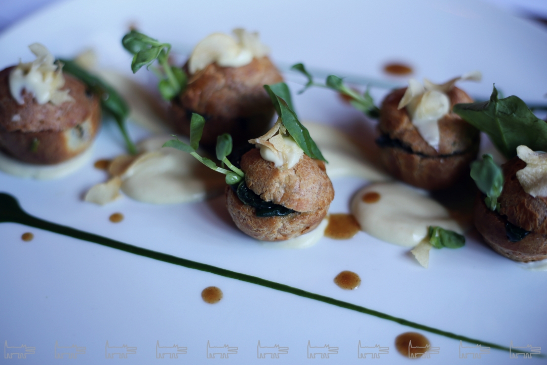 Фудпейринг – наше все: к профитроли с escargos de Bourgogne и молодым шпинатом подают французское сухое, урожая 2015 года. Escargos de Bourgogne – это виноградные улитки из Бургундии с муслином из чеснока и соусом beurre escargot. Ароматные булочки выпекают здесь каждое утро, и бывают они классические, сырные, с кунжутом и с солью. Выбираю с сыром. Даже для человека, который впервые ест улитки (я) и не считает себя высококлассным сомелье (тоже я) – сочетание профитролей и напитка, по меньшей мере, идеальное. Пара Бред Питт – Дженнифер Энистон была не настолько гармоничной, как этот гастрономический союз.