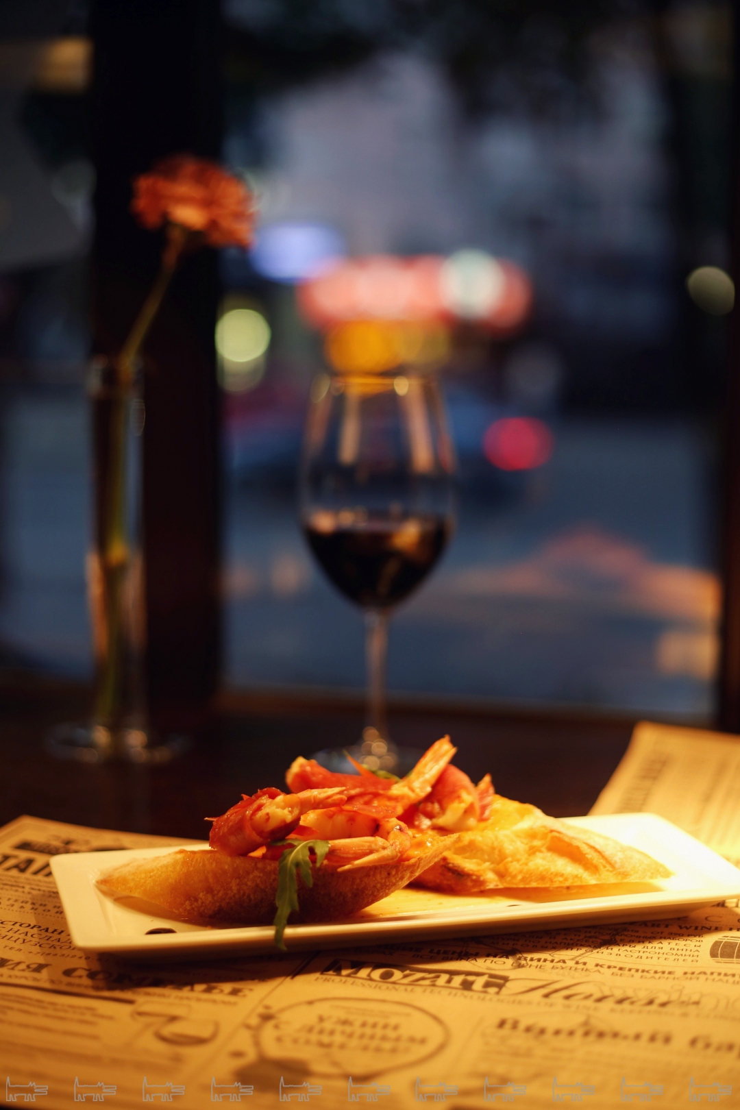 Моя закуска была совсем не маленькая, но ровно такая, чтобы «заглянцевать» весь мой бар-хоппинг: тапас с норвежским лангустином, хамоном серрано и коктейльным соусом.