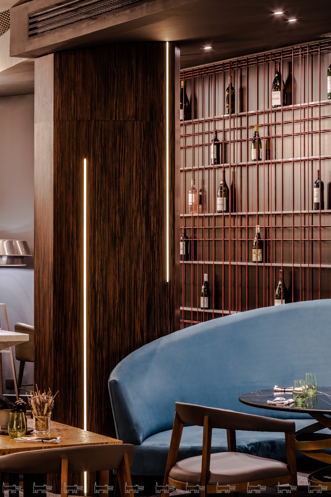 Концепция Fire Lake Grill House & Cocktail Bar родом из Миннесоты. Великолепный river view – визитная карточка не только самого отеля. Не просто попробовать, а по-настоящему отведать уху из осетра с шафраном и белым вином можно, созерцая реку Дон. Атмосфера донских традиций присутствует и в меню, и в локации, а вот дизайн самого ресторана в высшей степени современный. Диваны с покатой спинкой могут создать уют романтического ужина, а могут вместить сразу несколько человек на время дружеских посиделок. Через панорамные окна можно наблюдать за сменой времен года, сидя на диванах-лузах. Интерьер ресторана вобрал в себя много дерева, а барная стойка украшена ониксом, металлом и дополнена зеркалами. Для торжественного вечера ресторан готов принять 86 гостей. Не стоит забывать и про бизнес-ланчи – стейк, только что снятый с углей и съеденный во время обеденного перерыва – залог максимально удачной второй половины дня. Для вечера свиданий в баре заготовлены специальные напитки, которые так и называются «для особого случая».