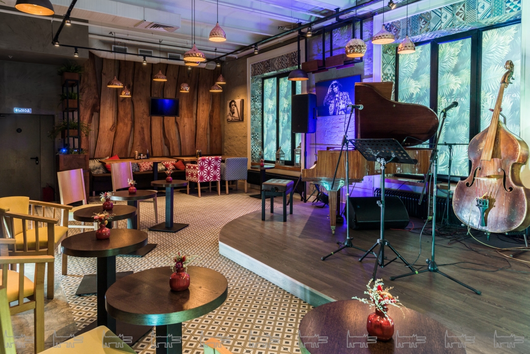Полукругом от сцены в традициях западной культуры потребления музыки расположены небольшие круглые столики. Между колонн поместились уютные кресла, а вдоль стен стройным рядом – диваны для больших компаний. Приобретенные для клуба рояль и барабаны здесь в качестве резидентов. Специальное освещение и акустика продумывались на ранних этапах ремонта. На стенах – портреты известных ростовских джазистов Кима Назаретова, Николая Гончарова, а также мировых звезд афроамериканской музыки: Рэя Чарльза, Луи Армстронга. Блюда подаются из ресторана Grill&Garden. В этом месяце бренд-шеф Басем Заин предлагает попробовать новую позицию – фтили с говядиной, овощами и сыром.