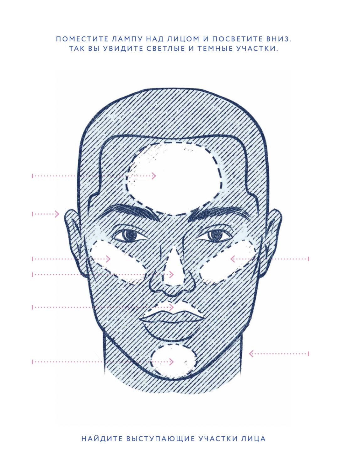 Ваше лицо ― это сетка, по которой нужно расставить акценты. Самый простой способ понять, какие участки кожи выделяются естественным образом, ― поместить лампу сверху и посветить вниз. Так вы увидите светлые и темные зоны. У некоторых людей скулы более выражены, чем у других. «Найдите выдающиеся участки лица», ― советует Нгуен. Популярные места для использования хайлайтера ― «скулы, переносица, зона над надбровной костью, уголки глаз, где находятся слезные каналы, верхняя часть лба и центр подбородка». В качестве бонуса: уши! «Я люблю наносить хайлайтер на уши, а также на шею, чтобы все выглядело ровно». Проведите по верхушкам ушей и по боковым сторонам шеи ― везде, куда падает свет.