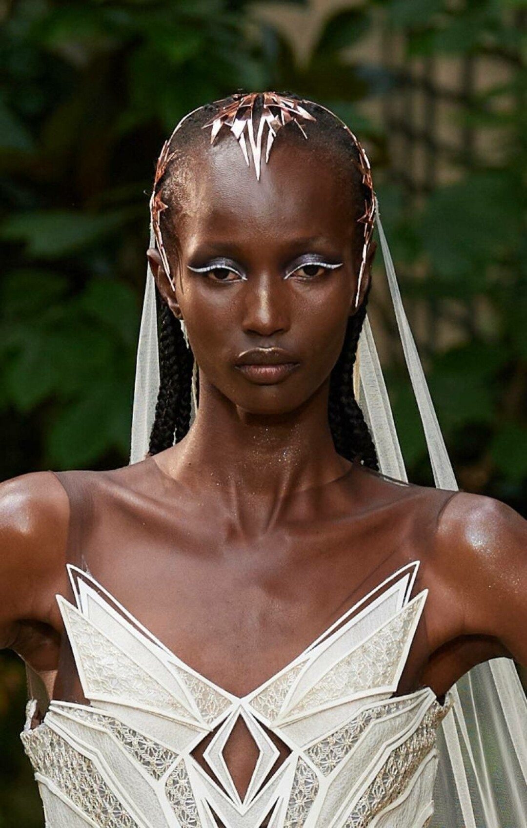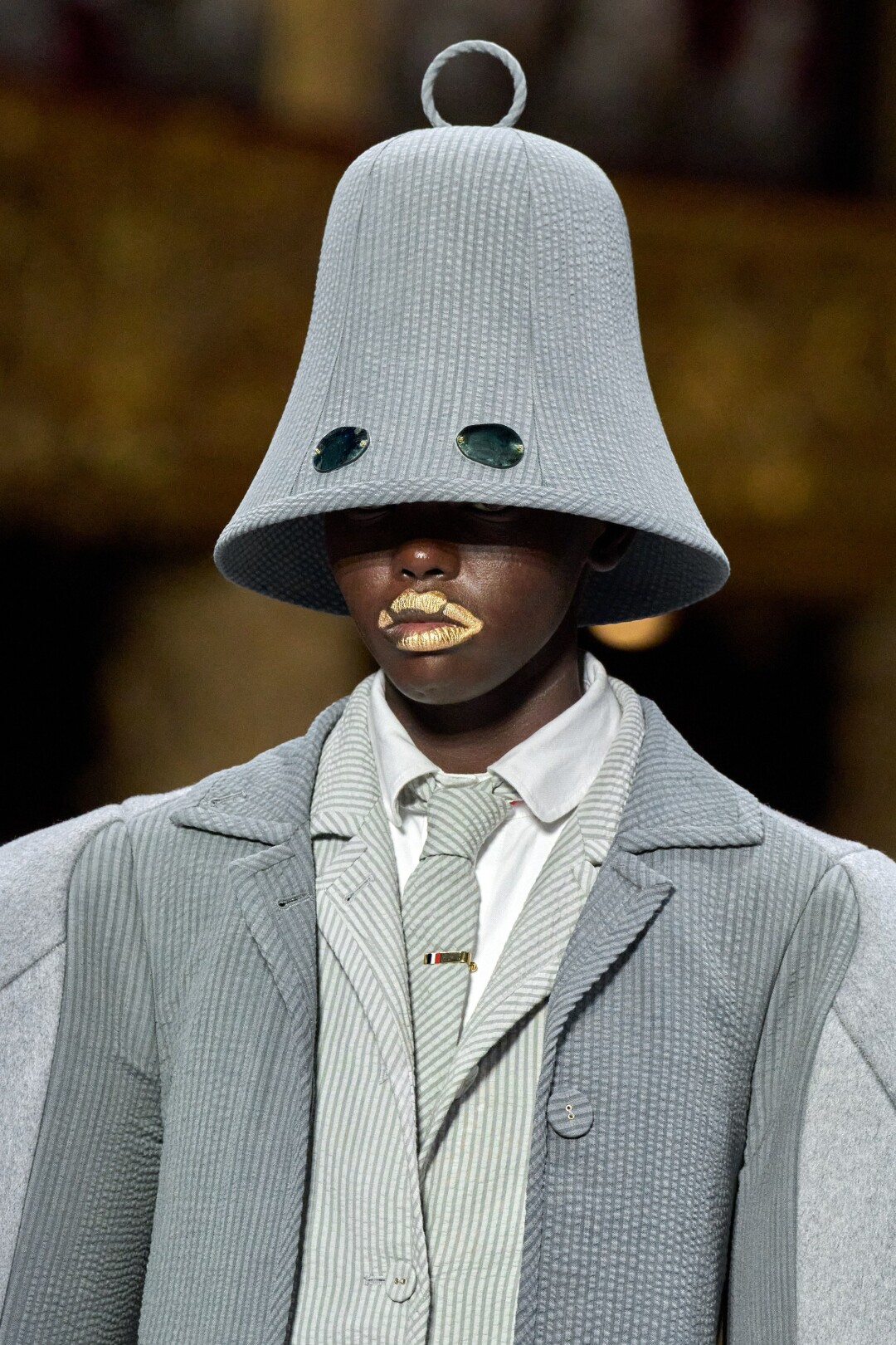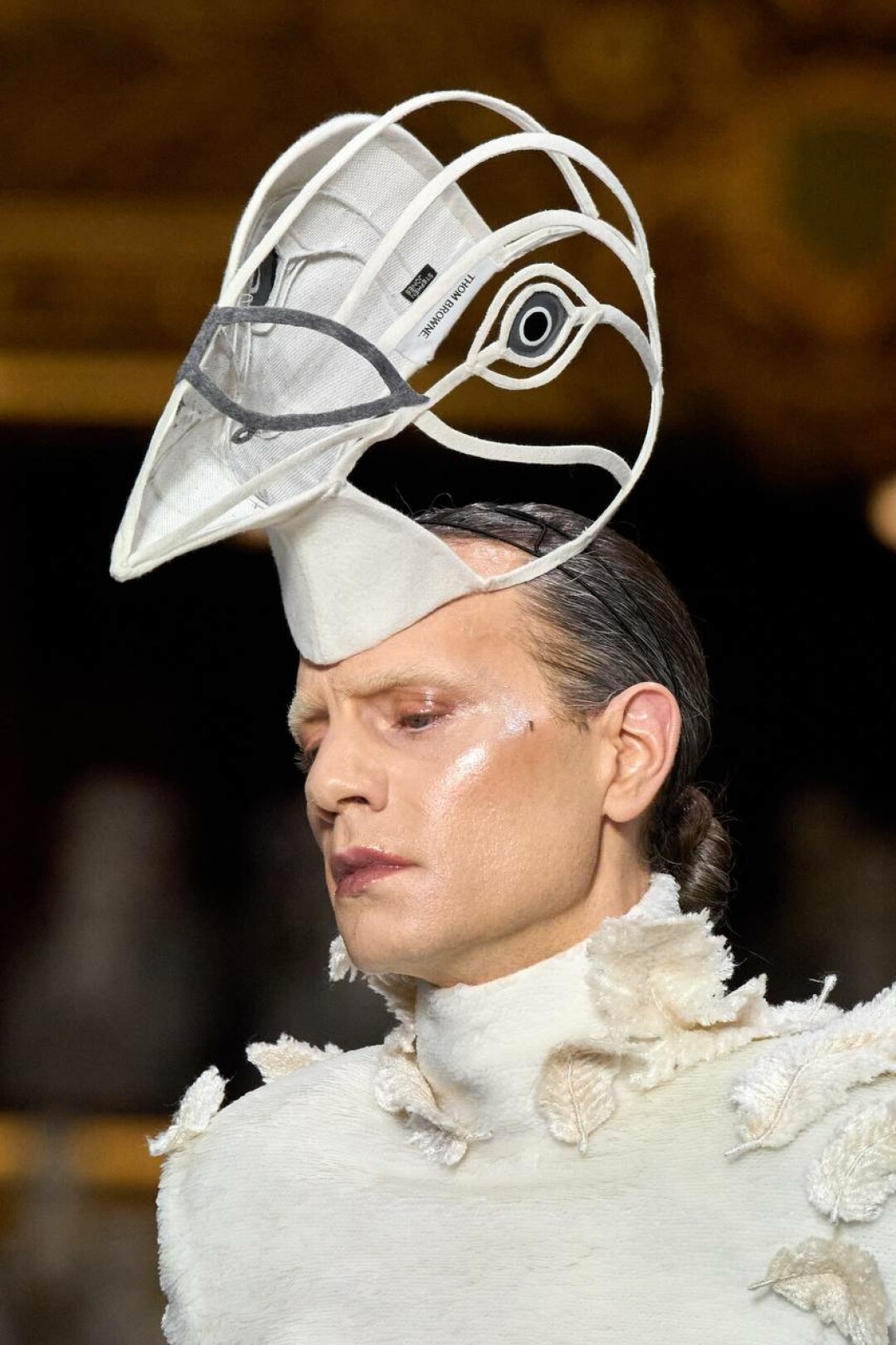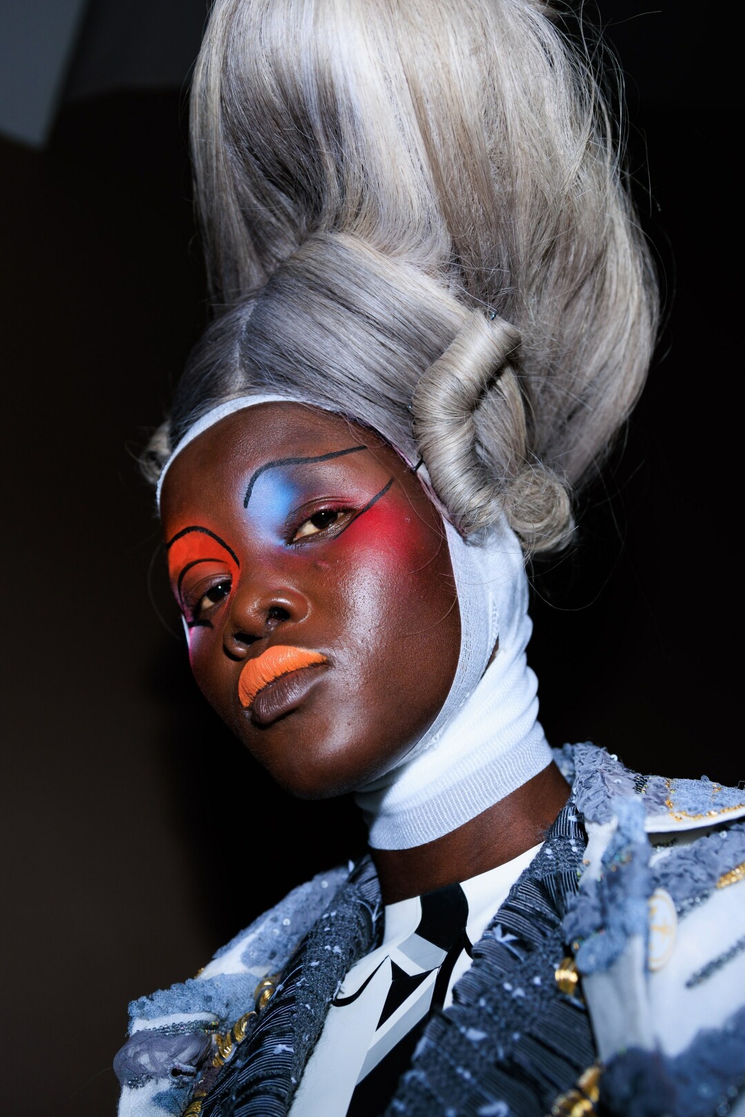 Кутюр без макияжа на стыке моды и искусства — не кутюр. Кобальтовый синий Schiaparelli — художественная отсылка к работам Ива Кляйна и Жоана Миро (а также референс из африканского искусства). Тем временем яркий макияж Исамайи Френч добавлял гротеска театральной феерии Thom Browne в Опере Гарнье, во время которой Том Браун превратился из портного в кутюрье (и обратно).