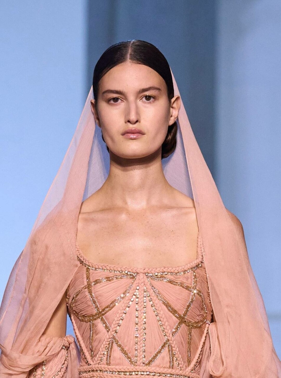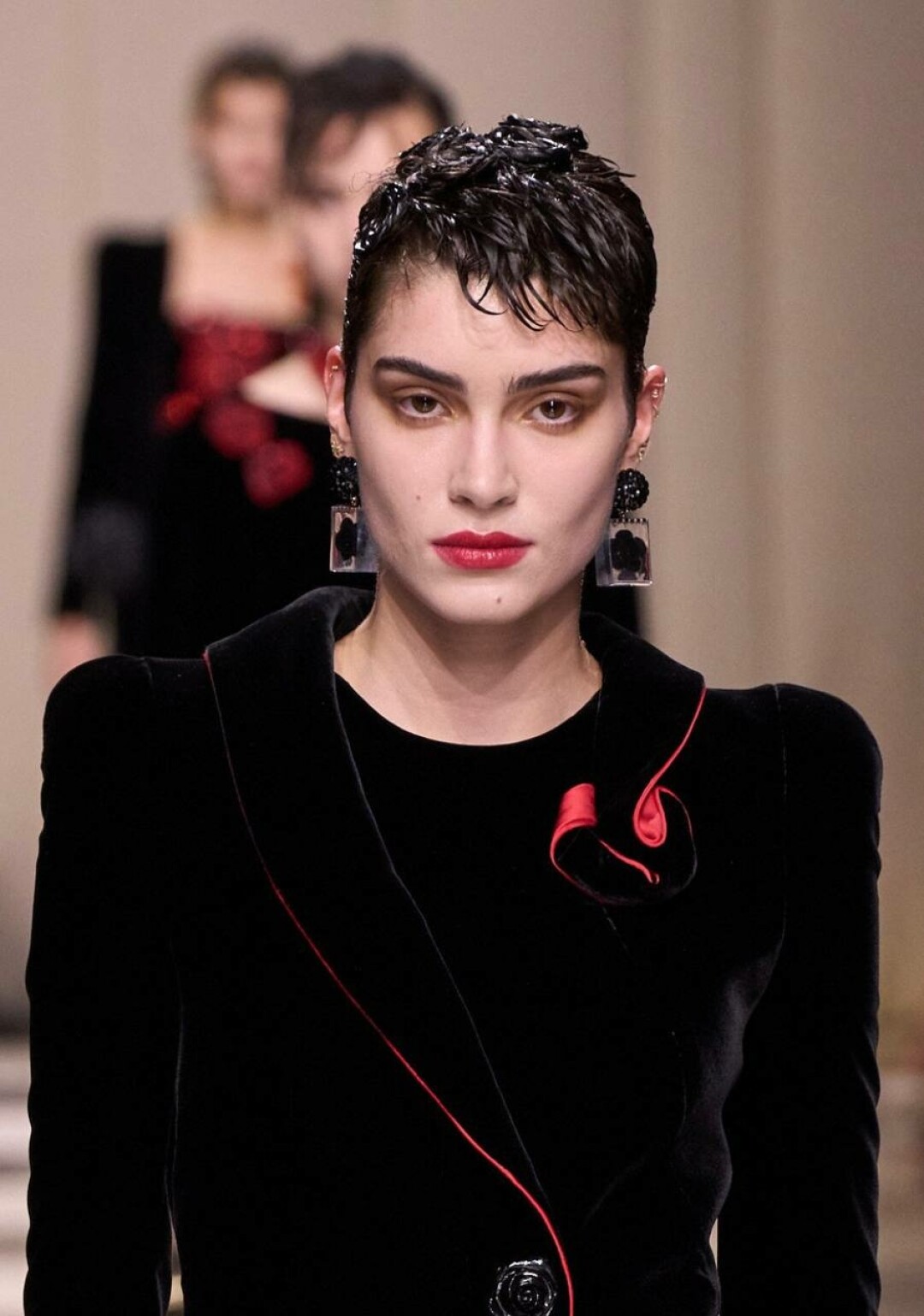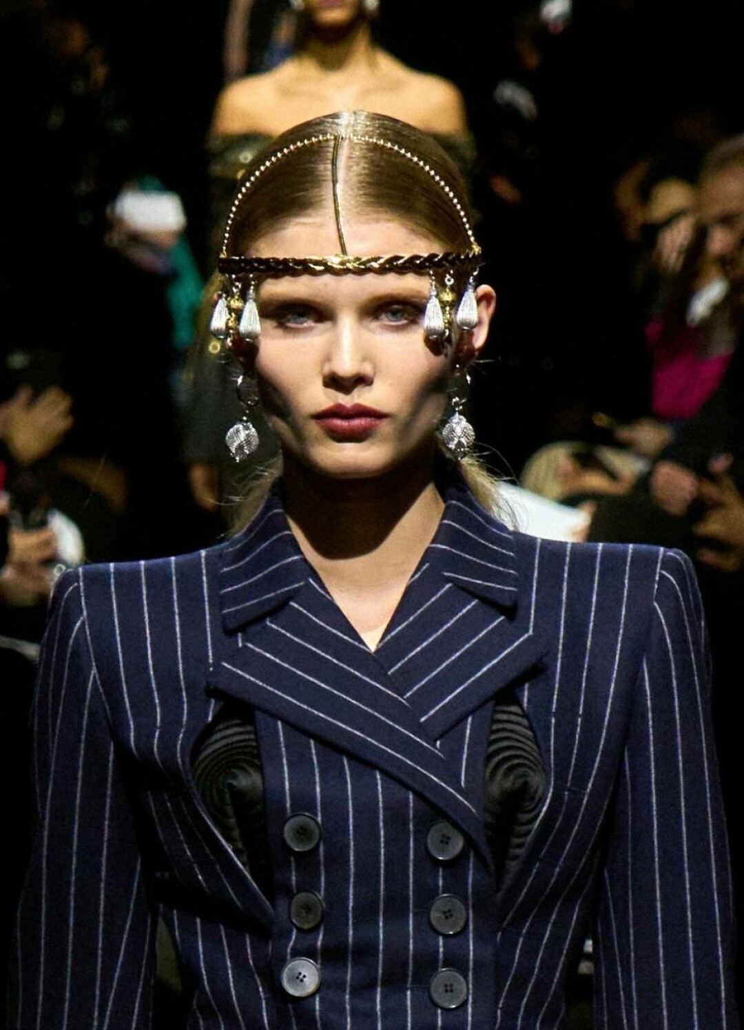 Будем прямолинейны: главное заявление этой недели моды – строгий пробор. Он дополнял греческие прически Christian Dior и Jean Paul Gaultier, он же подчеркивал геометричность футуристичных платьев Iris van Herpen. Как правило, пробор соседствовал с гладким хвостом или пучком (а то и фальшпучком как у Fendi!), но возможна альтернатива. Так, локоны Моны Тугард развевались по ветру вместе с массивными серьгами Valentino, а Dolce & Gabbana спрятал прически моделей под атласной косынкой (практичный стайлинг-прием в условиях петербургского бриза, а то и шквала).