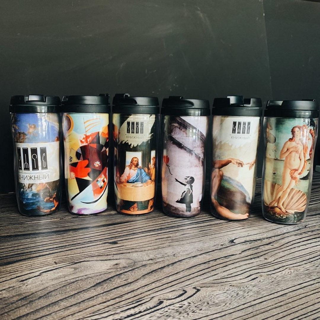Именные стаканы для многоразового использования с картинами великих художников сегодня и завтра можно будет приобрести в кофейне со скидкой 40%. Термосы и термокружки помимо ярких репродукций могут носить в себе грандиозные цитаты. «Человек ответственен за свои страсти», – сказал, например, Жан-Поль Сартр. Скидки также будут распространяться на зарубежную литературу, заботливо собранную и привезенную из московского музея Garage.