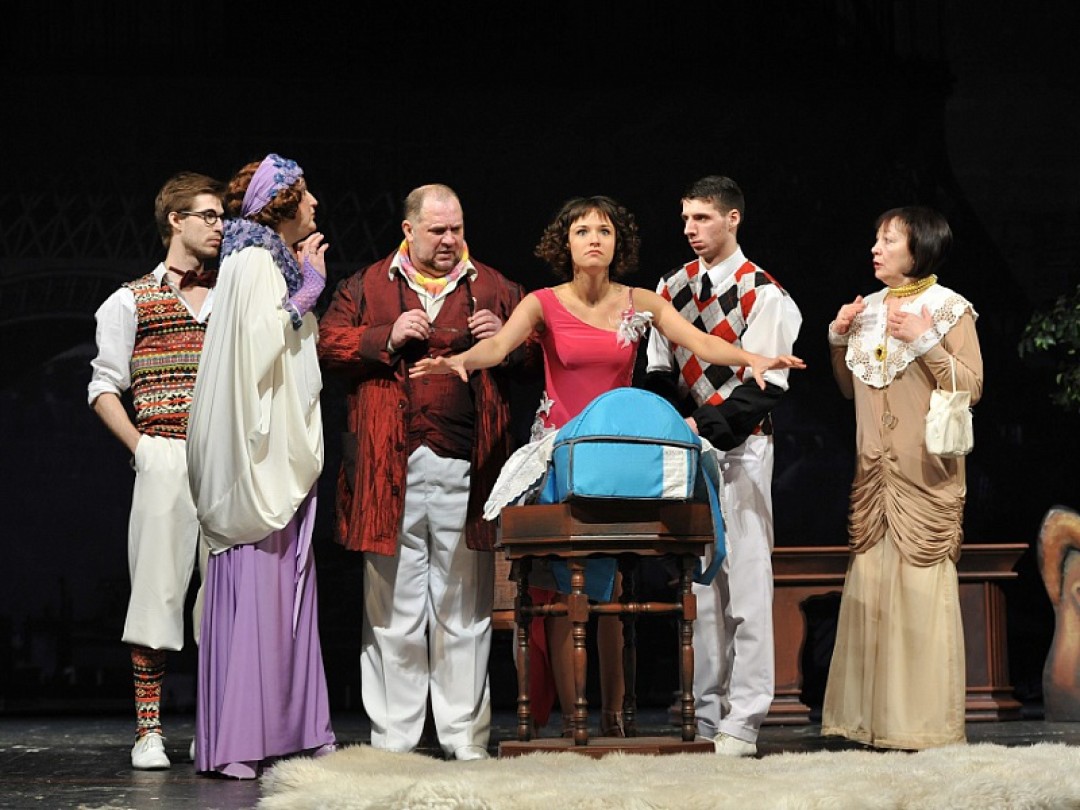 Комедия с французским настроением, яркими характерами, чередой забавных ситуаций и историей любви, которая побеждает все препятствия. Постановка Михаила Фейгина, художник по костюмам - Наталья Пальшкова.