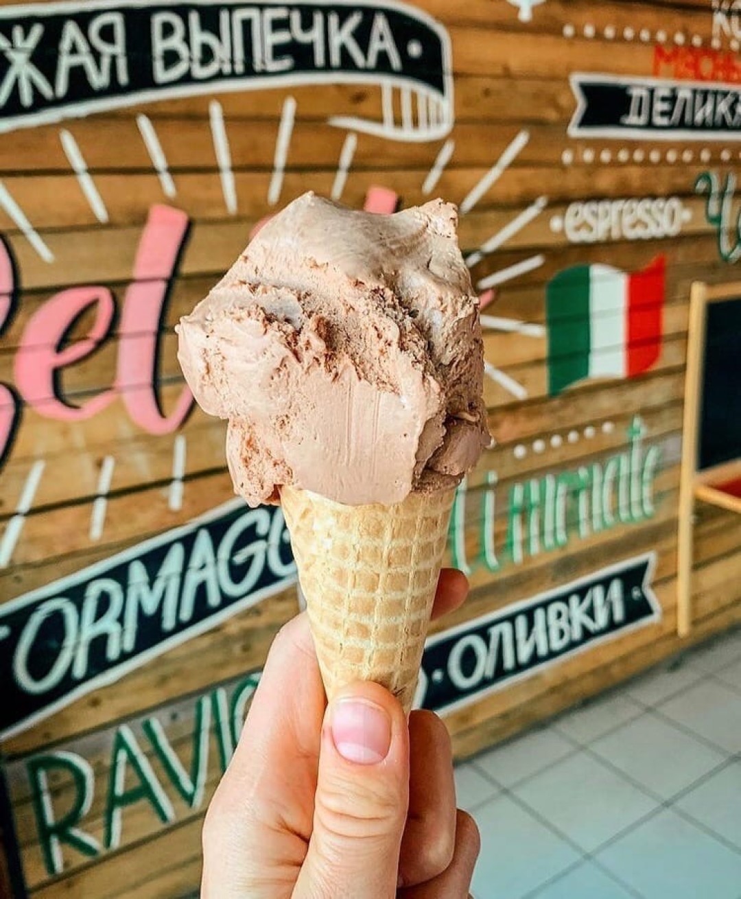 Федерико: Да, конечно. Так как мы делаем мороженое из натуральных продуктов, есть много вкусов, которые мы зимой не можем делать. Например, самый популярный вкус у нас — базилик. Я его всегда покупаю свежим. Но зимой, естественно, базилика нет. Либо он есть, но очень дорогой и не в таких объемах, как нам нужно. А люди приходят и спрашивают: «Где наше любимое мороженое с базиликом?» Приходится объяснять, что базилик у нас в наличии только летом.