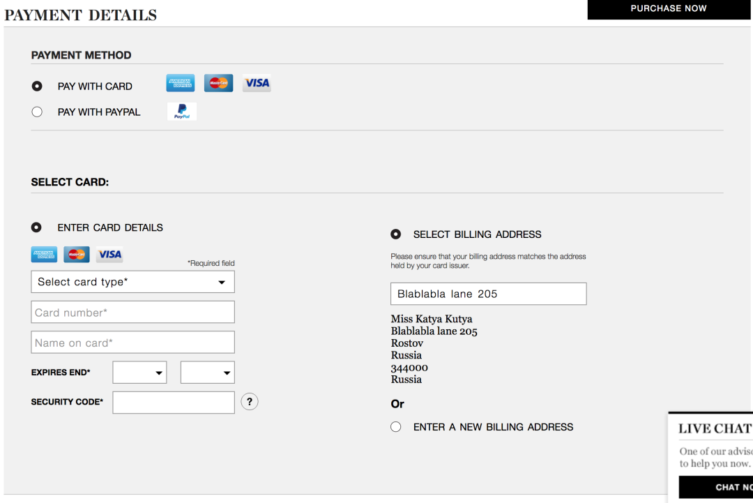 Выбрать адрес для выставления счета