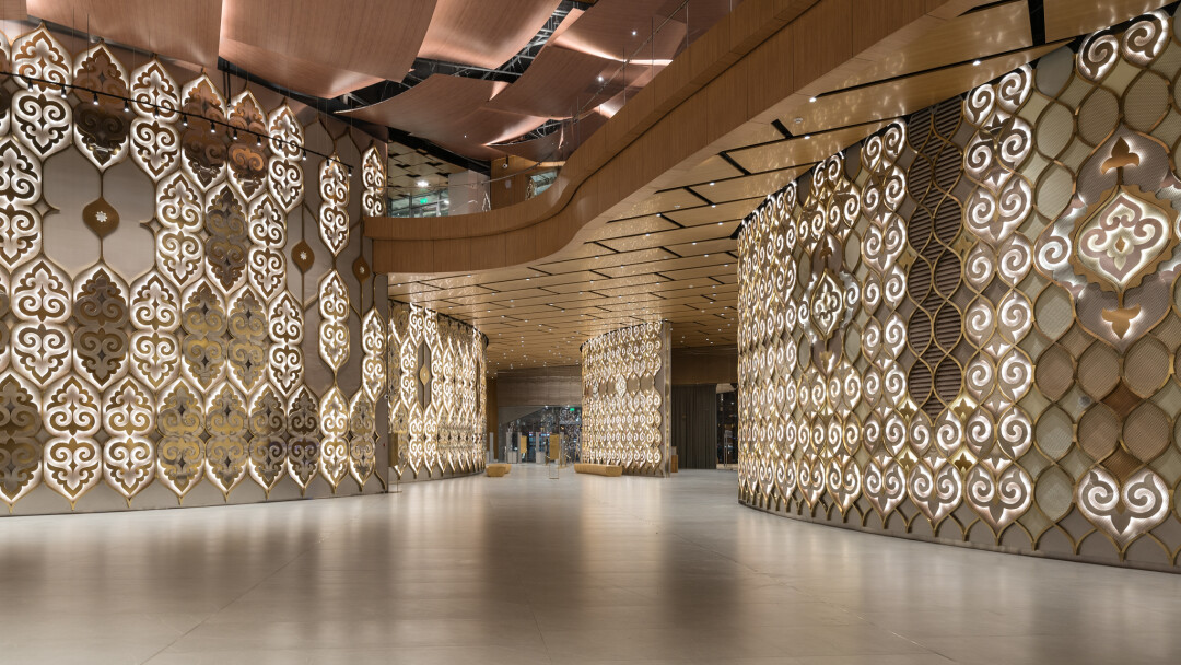 Еще более удачным театр сделали внутри. Это открытое пространство, где расставлены цилиндры, в каждом из которых скрывается один из зрительных залов. Все, включая вдумчивую отделку, располагает к расслабленному светскому или задумчиво-мечтательному блужданию по фойе. Орнаменты на стенах стали чуть не главным узнаваемым элементом: сделаны по национальным мотивам, но все же выраженно современные.