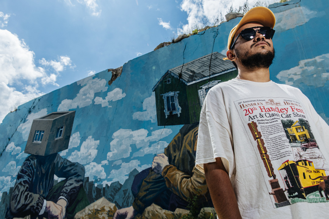 Я создал персонажей, стоящих друг напротив друга: у них молчаливый диалог. Из-за темы «Назад к корням» я решил сделать одного персонажа с национальным татарским домиком с узорами и наличниками, а второго – городского, это универсальный образ, который понятен всем регионам. Эти два образа, два брата, встретились на нейтральной территории. Может, они давно не виделись и рассказывают друг другу новости: городской – о том, что творится в современном мире, а деревенский делится природными моментами. Точно так же, как мы, художники из городов, приехали сюда и делимся уличным искусством, которое родилось в городе. При этом мы здесь вдохновляемся природой, селами, которые здесь располагаются. Может быть, мы увезем с собой частичку вдохновения, идеи и реализуем это на холсте.