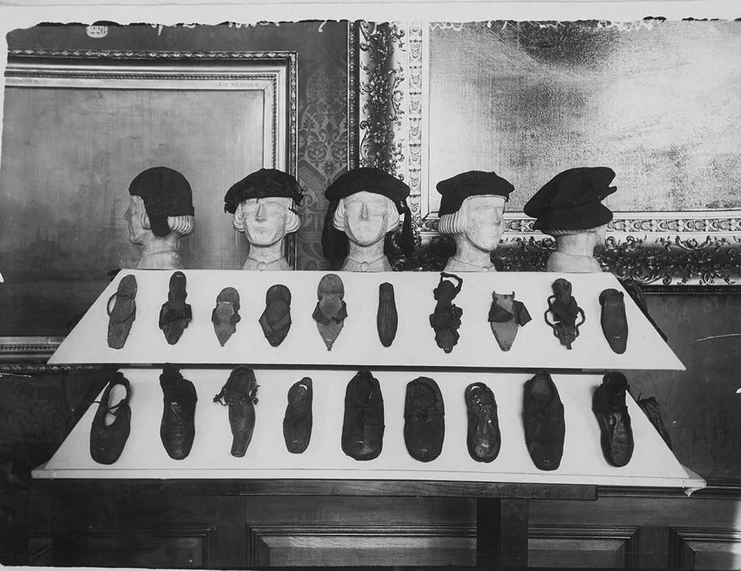 В методах, по которым построена основная экспозиция, нет ничего явно оригинального. Несколько шерстяных тюдоровских беретов, спасенных из лондонского рва и составляющих часть обширной коллекции мистера Сеймура Лукаса, эффектно выставлены на грубо выточенных из дерева головах с волосами, уложенными по моде соответствующего периода. Костюмы в основном надеты на манекены без рук и ног, но снабжены париками — судя по их новенькому виду, свежеизготовленными (Bather 1912).