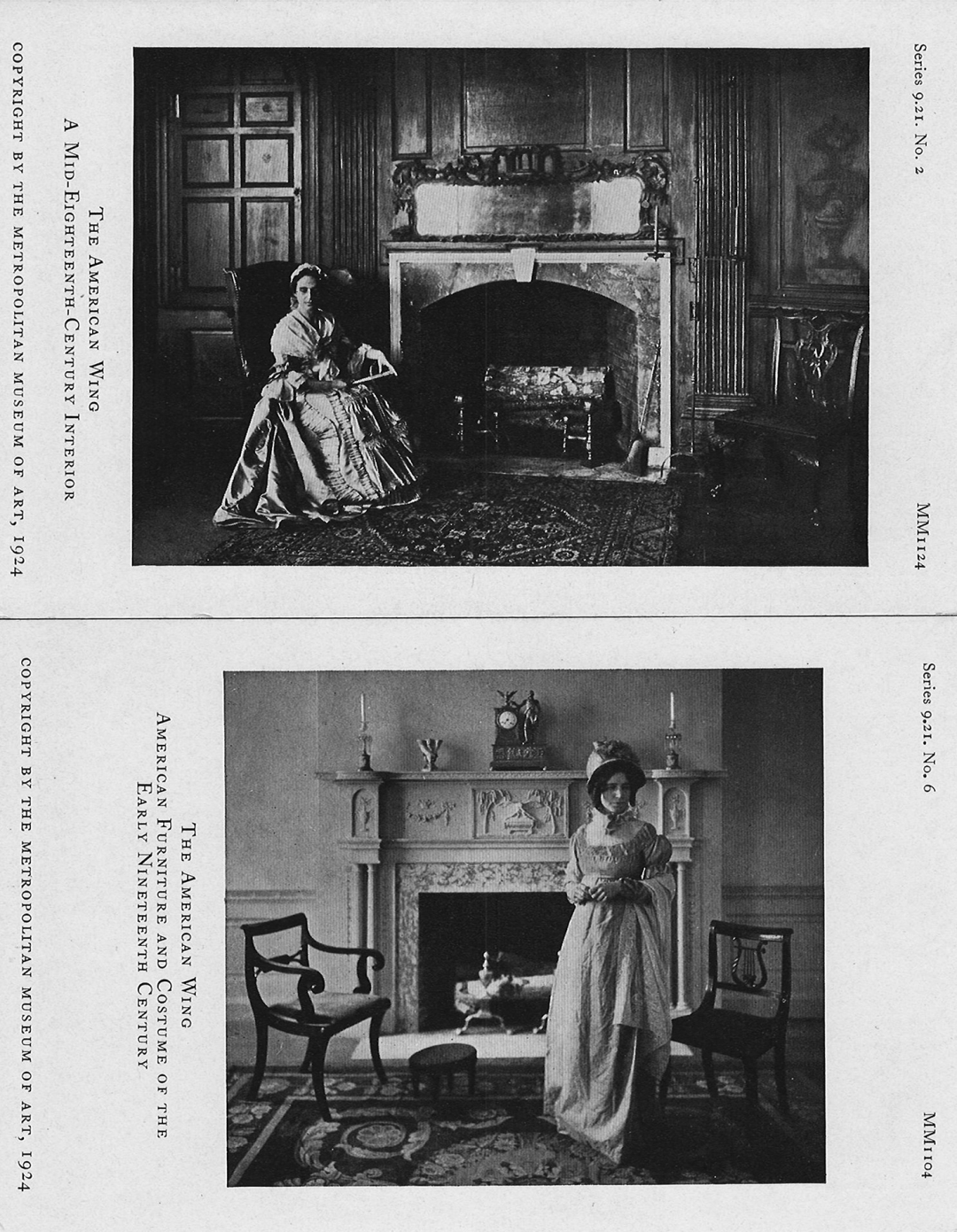 Рост интереса публики к материальной истории одежды в конце концов отразился и на музеях: так, к началу ХX века Метрополитен-музей начал активно пополнять коллекцию образцами исторической моды — в 1907 году музей впервые приобрел сразу два подобных экспоната (Metropolitan Museum of Art 1907a; Metropolitan Museum of Art 1907b): французский камзол (номер 07.70) и расшитое хлопчатобумажное платье эпохи Регентства (номер 07.146.5). В 1908 году музей получил в дар от художника Уильяма Джейкоба Бэра «шелковое платье из голубой парчи (Италия), два расшитых шелковых сюртука, один расшитый бархатный сюртук, расшитые панталоны длиной до колена, кожаные домашние туфли эпохи Людовика XV, платье в стиле ампир из тонкого расшитого муслина, один льняной жилет, три жилета из шелка, два воротничка из тонкого муслина с вышивкой, один корсаж на косточках из атласной парчи с рукавами (Франция)» (Metropolitan Museum of Art 1908).