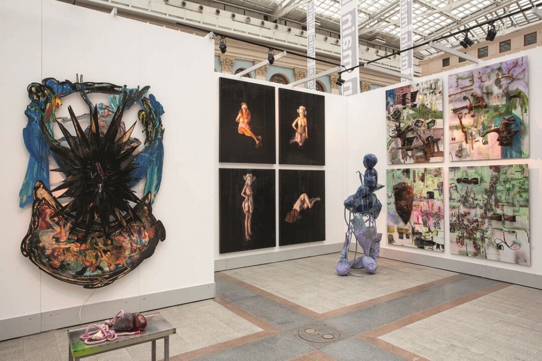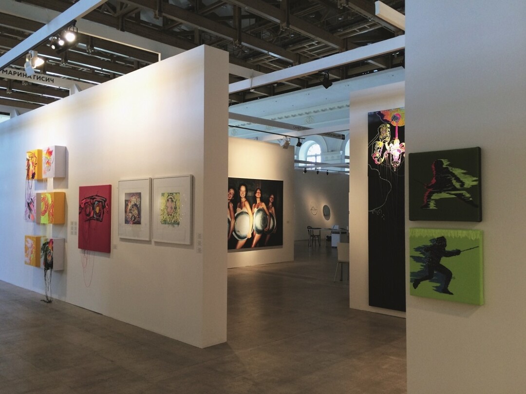 Стенд Marina Gisich Gallery на ярмарке Cosmoscow в 2014 году с инсталляцией Тани Ахметгалиевой — теперь работы можно увидеть в коллекции фонда «Екатерина»
