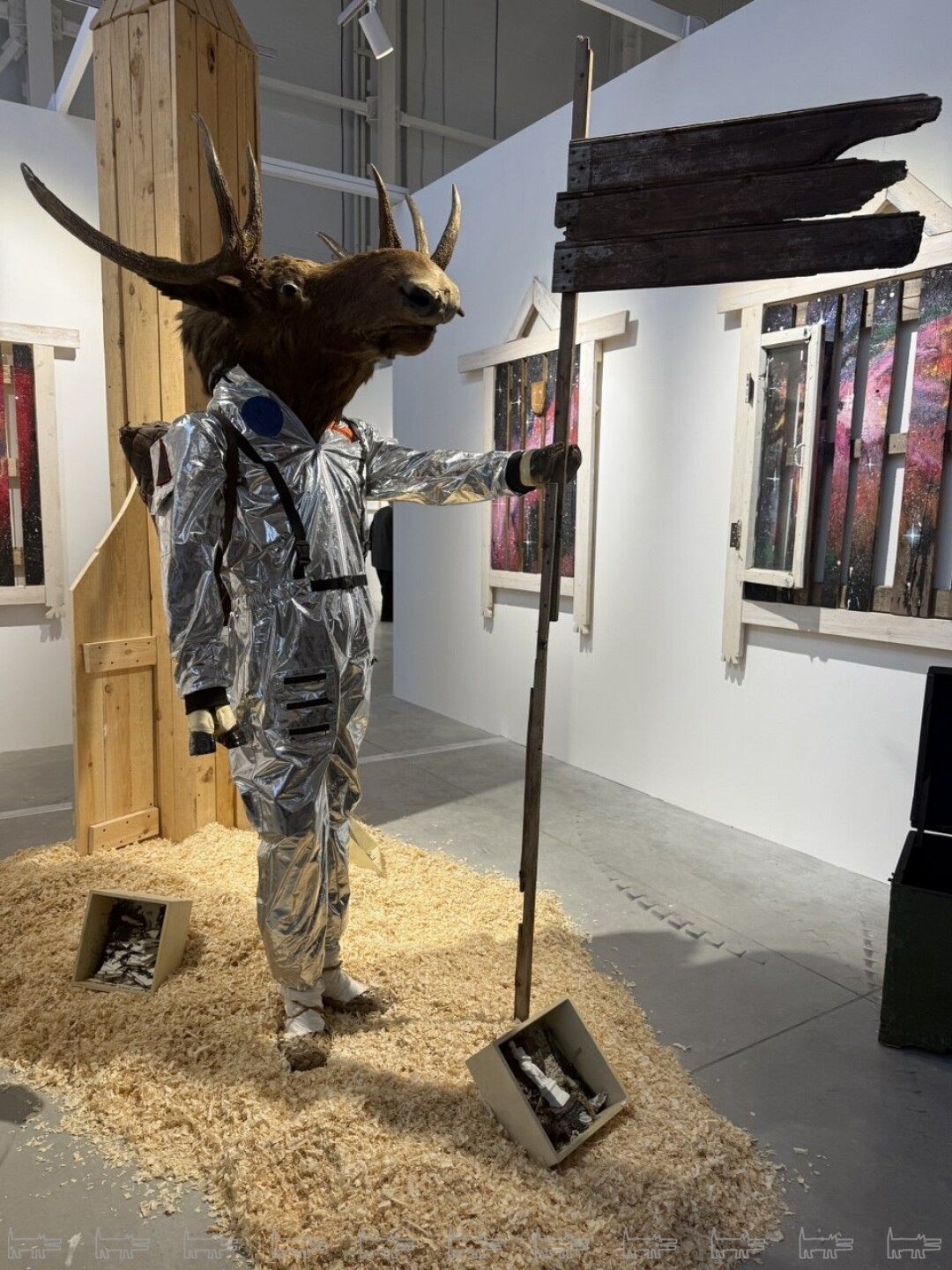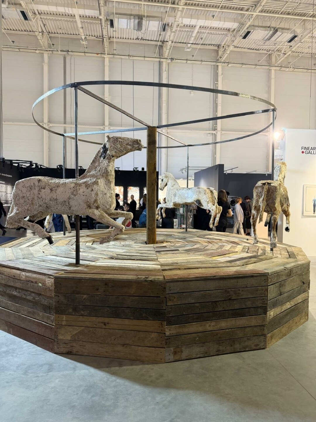 Anna Nova показала "художника года" по версии Cosmoscow Александры Гарт. В самом центре выставки стоит ее инсталляция «Постоянство веселья и грязи» (название работы позаимствовано у Даниила Хармса) - конструкция из металла, которая обшита деревянными досками и с фигурами коней из соленого теста по периметру. Создается образ карусели, но на ней нет веселья, это руина. Галерея представляет и одного из самых известных современных фотохудожников России Дмитрии Марков.