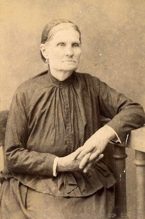 Пожилая крестьянка в кофте и юбке. Ателье «Фотография М. Г. Молчанова», Каменец-Подольский. 1880-е гг. Архив О. А. Хорошиловой
