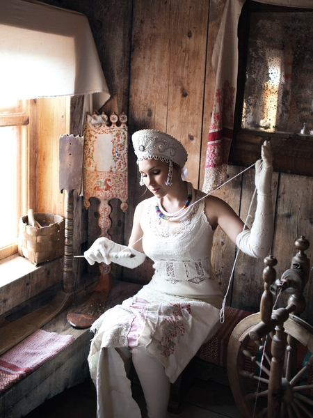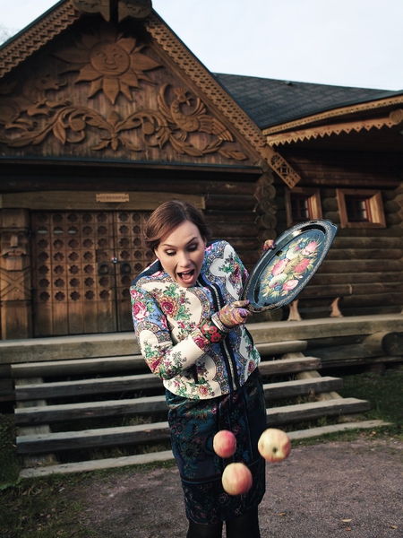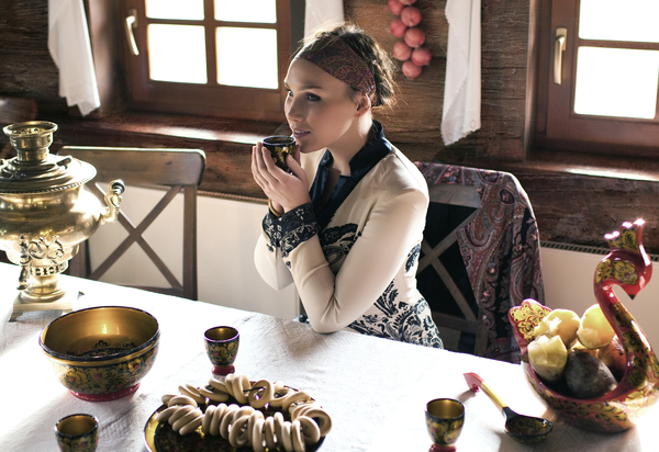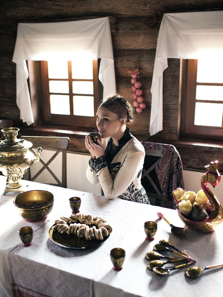 Поздравляем обеих актрис с победой и вспоминаем славянофильский фотопроект с участием Дарьи Екамасовой — оммаж русским народным промыслам от Павлопосадского платка до жостовских подносов.