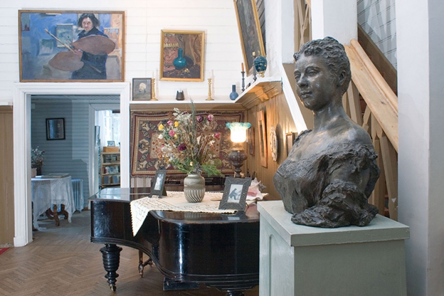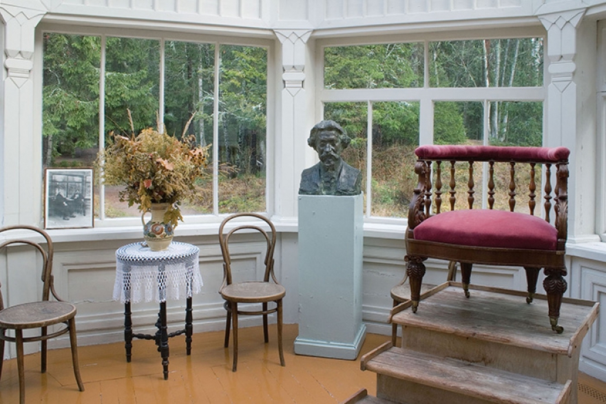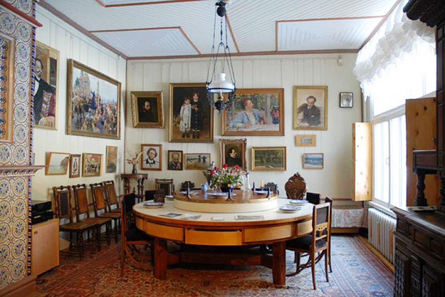 Музей-усадьба Репина «Пенаты» Усадьба в поселке Куоккала была куплена Репиным для второй жены в 1899 году и в последующие годы обустроена по планам самого художника. Здесь он прожил последние тридцать лет и был похоронен. Напоминающее терем двухэтажное сооружение постепенно обрастало все новыми пристройками со множеством больших окон и веранд, пирамидальными световыми фонарями, дающими естественное освещение. В летней и зимней мастерских живописцу позировали Шаляпин, Горький, Короленко, Бехтерев, Чуковский. Сгоревшая во время войны усадьба была построена заново в 1962 году. |