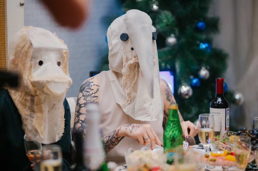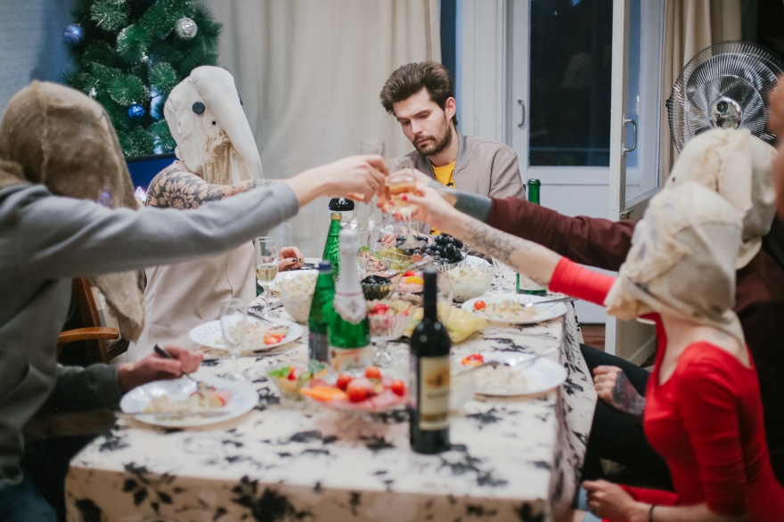 В небольшой хрущевке на севере Петербурга за традиционным столом с майонезными салатами и шампанским собрались люди в причудливых масках то ли животных, то ли героев мультфильма «Девять». Это не празднование Нового года с необычными карнавальными костюмами, а съемки клипа Noize MC на песню «Грабли», вошедшую в его седьмой студийный альбом «Царь горы». По сюжету история происходит 31 декабря в разные годы жизни главного героя.