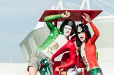 На улицах можно было увидеть раскрашенный в цвета мексиканского флага автобус, из которого доносились традиционные песни. Нашей редакции удалось «зашазамить» один из самых популярных у фанатов треков – Los Tucanes De Tijuana – La Chica Sexy, enjoy.
