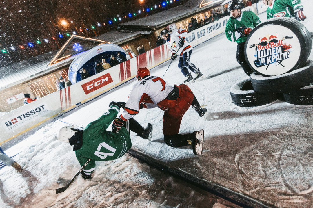 Хоккейный турнир «Red Bull Шлем и Краги» — это всероссийский чемпионат по любительскому хоккею. На этот раз соревнования приобрели статус международных — отборочные турниры проходили в том числе в Казахстане. Серия состязаний прокатилась по шестнадцати городам: Москве, Санкт-Петербургу, Казани, Екатеринбургу, Воронежу, Владивостоку, Сергиев Посаду, Альметьевску, Волгограду, Новосибирску, Ижевску, Липецку, Электростали, Перми, Барнаулу, Алма-Ате и Астане. В общей сложности в чемпионате выступили четыреста семьдесят команд и около двух тысяч семисот игроков со всей России. Формат турнира был «четыре на четыре», без вратарей и по шесть игроков в команде. Победители этапов приняли участие в финале в Москве на стадионе «Метеор».