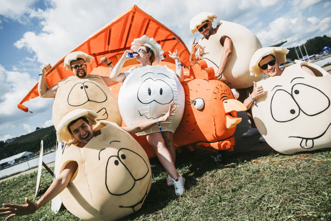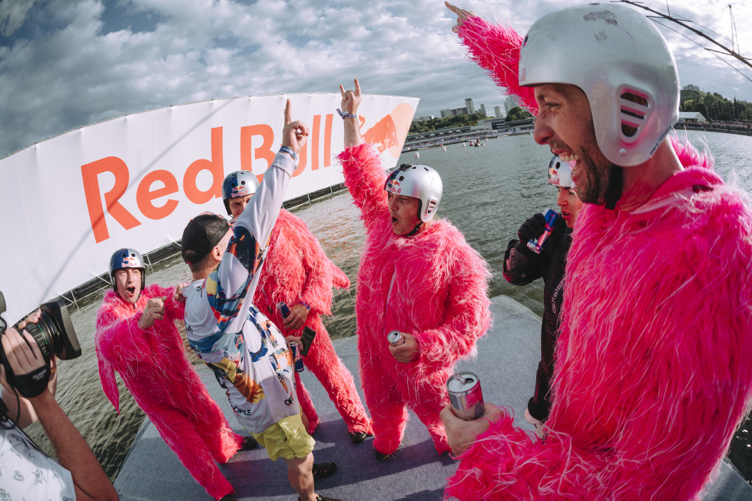 Третье место в Red Bull Flugtag 2019 заняла команда «Универсальный шпагат» из Санкт-Петербурга. Она уже трижды участвовала и побеждала в зимнем проекте Red Bull – Red Bull Jump&Freeze. Его суть в том, что сноубордисты и лыжники в оригинальных костюмах съезжают со снежного склона прямо в бассейн с ледяной водой, выполняя по пути какой-нибудь трюк.