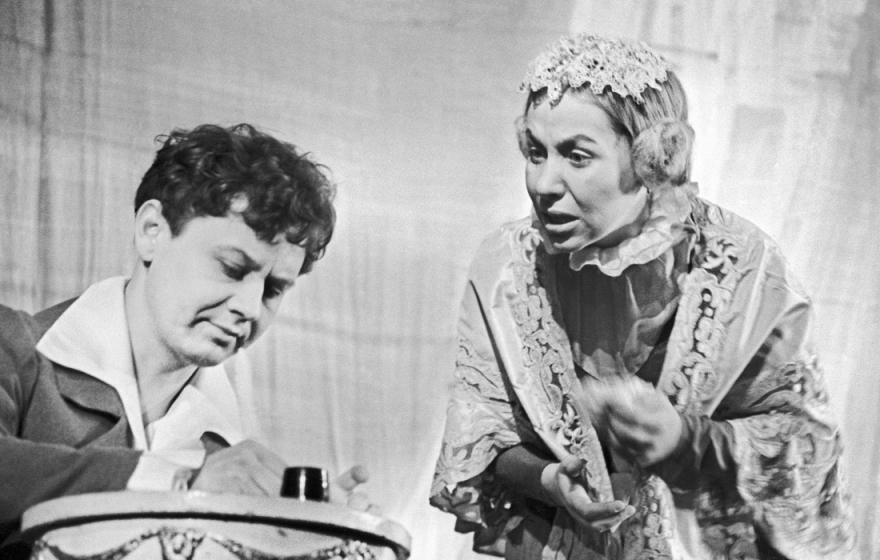 В театре Табаков был сложнее и разнообразнее. В «Обыкновенной истории», в «Голом короле» или в «Как брат брату» он играл не лицемеров, безбожно спекулирующих обаянием, хитрецов, упивающихся своей ловкостью, или, напротив, лежебок, чуть ли не бравирующих своей вальяжностью, а архетипических персонажей, которым любое время по плечу, но и тесновато, ведь в глазах у них горит вечный огонь.
