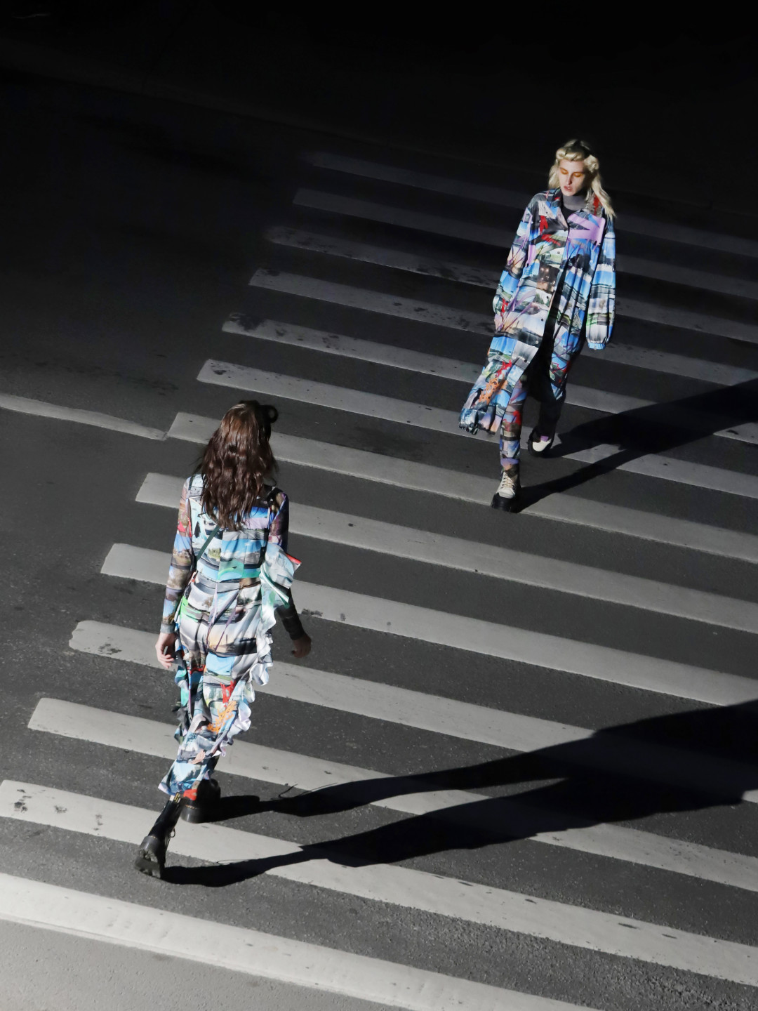 Оля: Принты в сезоне весна–лето собраны из фотографий, которые я сделала из окна своей машины, это мои личные маршруты. Что-то зашифровано для близких: они могут найти на снимках себя или те места, где мы были вместе. Другой принт сделан из скриншотов навигаторов и музыкальных плейлистов. Но я не могу назвать себя художником.