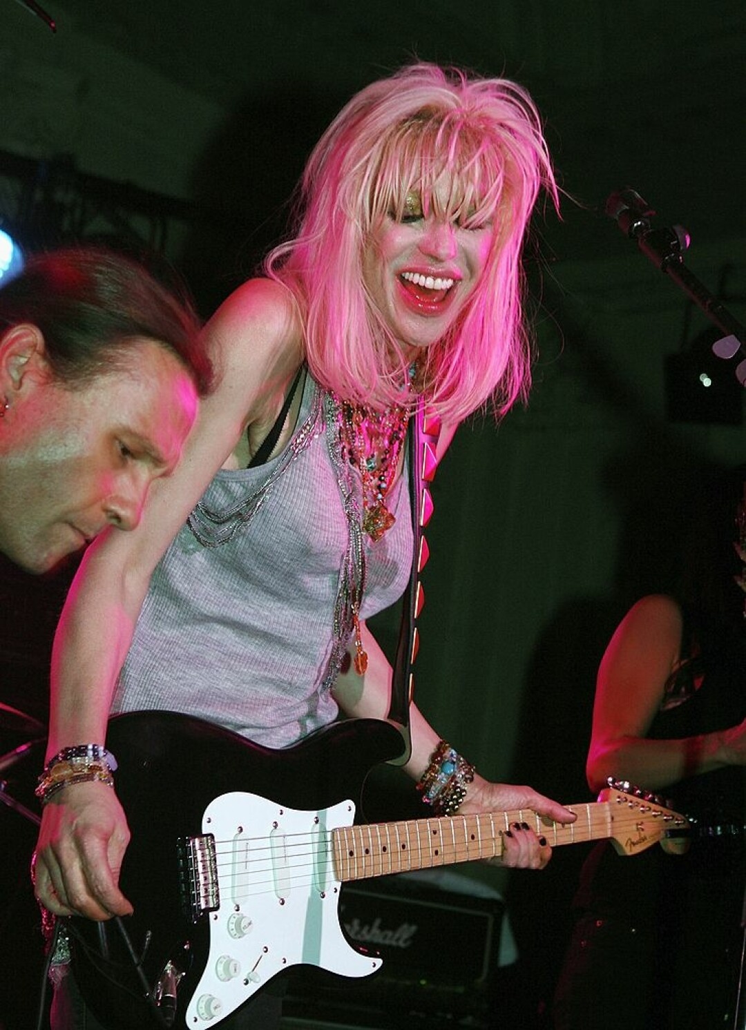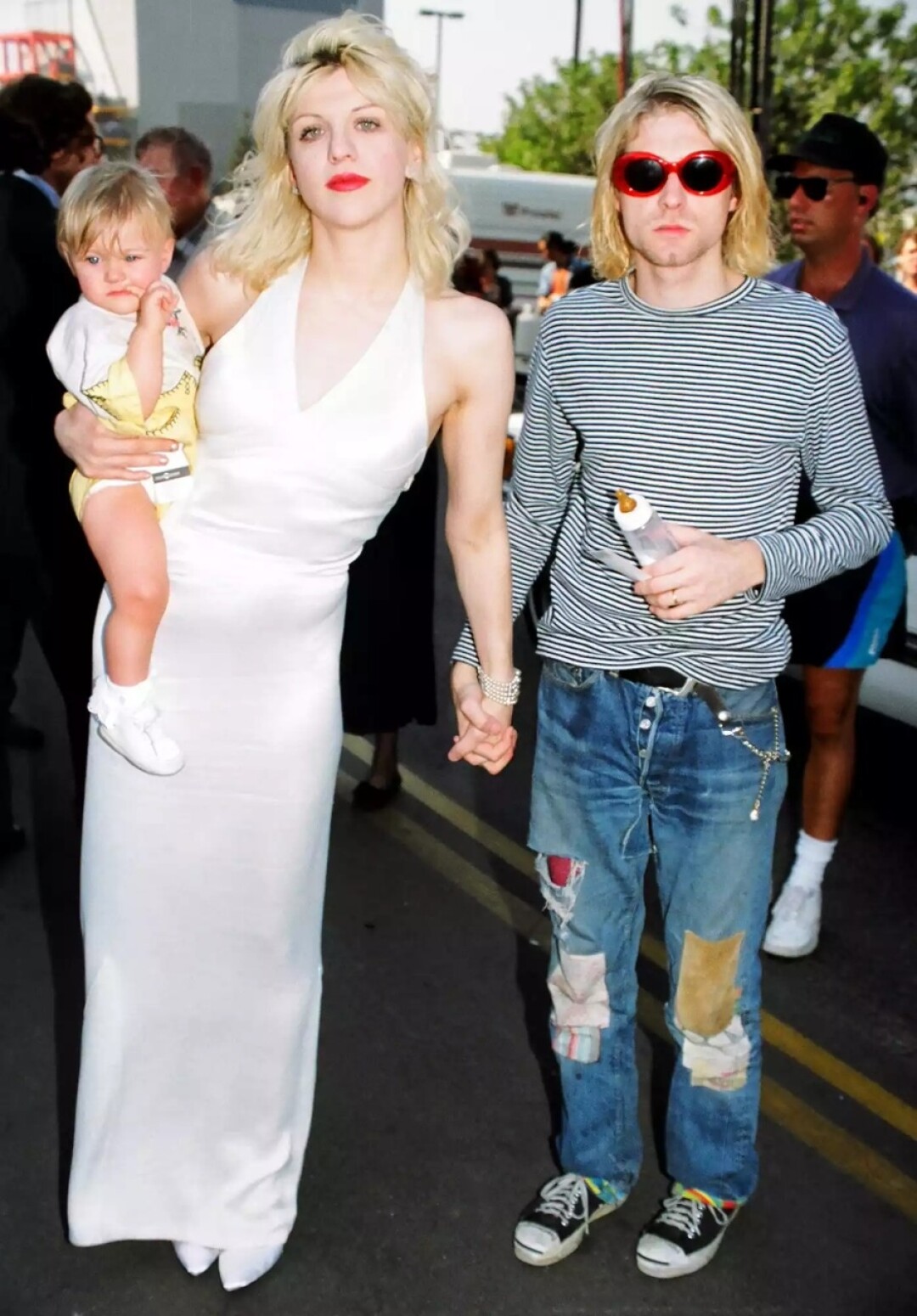Голые платья с блестками, утракороткие юбки, корсеты, вечно показывающийся кружевной лиф и прочая экстрасексуальность — результат поездки в Японию, где в конце 80-х Лав работает стриптизершей и без перерыва тусуется в клубах. В 1991 году Кортни знакомится с Куртом Кобейном. В то время для красных дорожек Кортни выбирает образ гранж-дивы — атласные платья в пол в тандеме с растрепанными пергидрольными локонами, кружевные комбинации с грубыми ботинками, легендарная тиара (реверанс Лав сделал Эди Слиман на показе Saint Laurent в 2016 году, когда надел на моделей узнаваемый аксессуар) и главный трюк — алые губы разной степени размазанности, с которыми Кортни не расстается до сих пор.