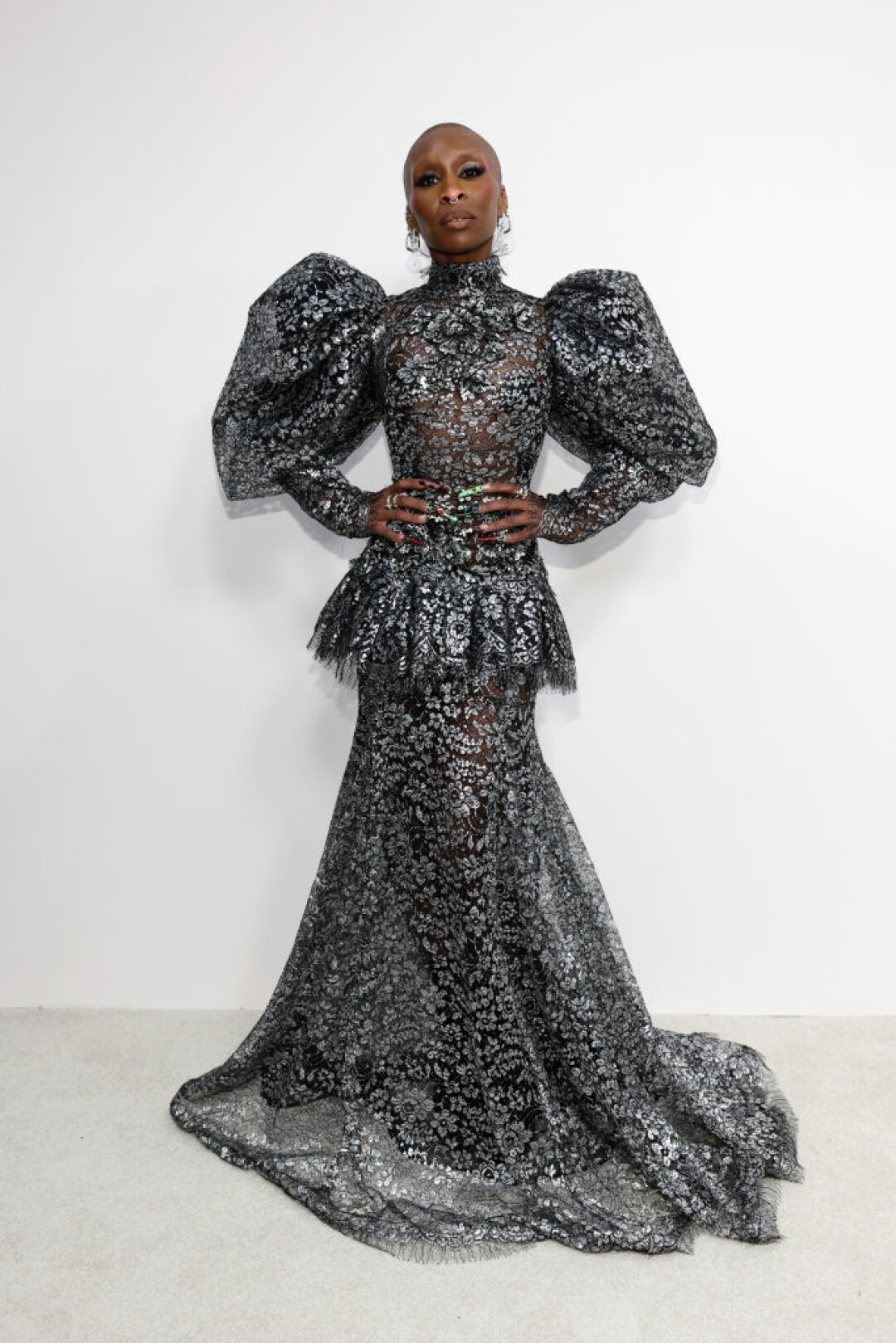 Еще один тренд с красной дорожки — оккультистский фэшн-вайб в духе Мишель Лами: пришелся по душе ведущей CFDA Синтии Эриво в кастомном Gap и монументальном колье, Алекс Косани в рукастом платье Area, а главное — Эрике Баду, поженившей костюмный кокон Thom Browne с языческим обвесом (в итоге получилась офискорная версия Калипсо).