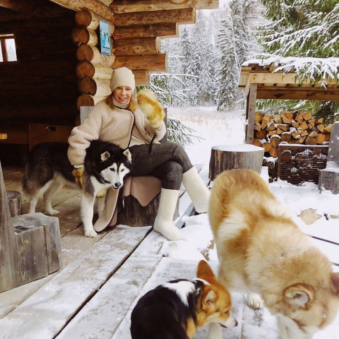 Давным-давно никаких хаски в России не было. Я увидела их в кино. А именно — в интро Arizona Dream Эмира Кустурицы, где есть повозка, запряженная хаски, попадающая в снежный буран. Этих летающих рыб и собак в снегу Кустурица в фильме никак не отыгрывает, но они сохраняются в зрительском подсознании навсегда. И я совершенно влюбилась в этих псов. Я и сейчас на них все не нагляжусь, они мне по-прежнему кажутся невероятно красивыми и моими, наконец-то моими! Я всегда любила всех собак, но родители, школа, университет. Какая тебе собака? Лучше вначале учебу закончи. И наконец, кажется, в 1998 году я нашла и купила хаски. И вот с одной стороны, они мои, а с другой — не мои, они свободные. Выдавливала из себя собственничество по капле, отпуская их одних в лес, в поля. У меня открытый дом, собаки всегда могут войти и выйти. Хочу — уйду, хочу — приду. Иногда они могут принять решение спать в снегу, а мне остается только его уважать.