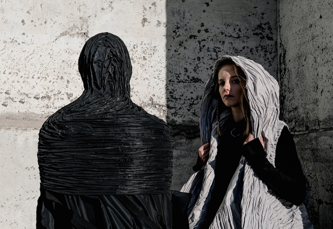 Заняться дизайном одежды программиста Екатерину Пономареву побудило отсутствие комфортных (прежде всего в эмоциональном плане) вещей. Поступив в петербургский филиал французского института Mod’Art, девушка подготовила дипломную коллекцию с платьями, бомберами и накидками из плащевой ткани, которая может принимать любую форму благодаря отсутствию конструктивных швов. У бренда It’s Personal получились настоящие забинтованные фигуры, которые, по мнению Екатерины, символизируют защитный кокон от социального давления, обезличивания и жизни на поводу у общества. А носить их It’s Personal предлагает с такой же авангардной обувью, выполненной дизайнером вручную.