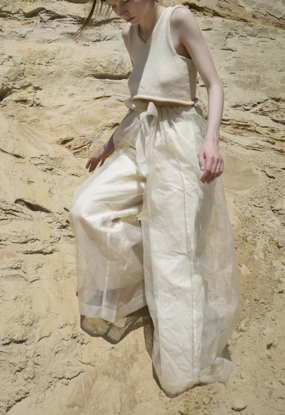 Марку M_U_R дизайнера и архитектора Ани Дружининой обожают богема, интеллектуалы, пуристы и философы. Потому что именно таким должен быть этичный бренд в наше время: Аня шьет из русских тканей (от ивановского льна до шуйского ситца), отказывается от традиционных коллекций в пользу осознанного потребления и, конечно, придерживается политики «экофрендли». «Я чувствую особенный драйв, когда могу "сделать моду" из продукции, которая обычно идет на скатерти, постельное белье, военную форму. — рассказывала Аня «Собака.ru». — Мне вообще интересно переосмысливать функции материалов: сшить пальто из строительного мешка, сумочки из шнуров или дерева. Люблю русскую пряжу — фабрика, которая делает нитки "ирис", до сих пор работает на Обводном канале, а я вяжу из них шортики и маечки».