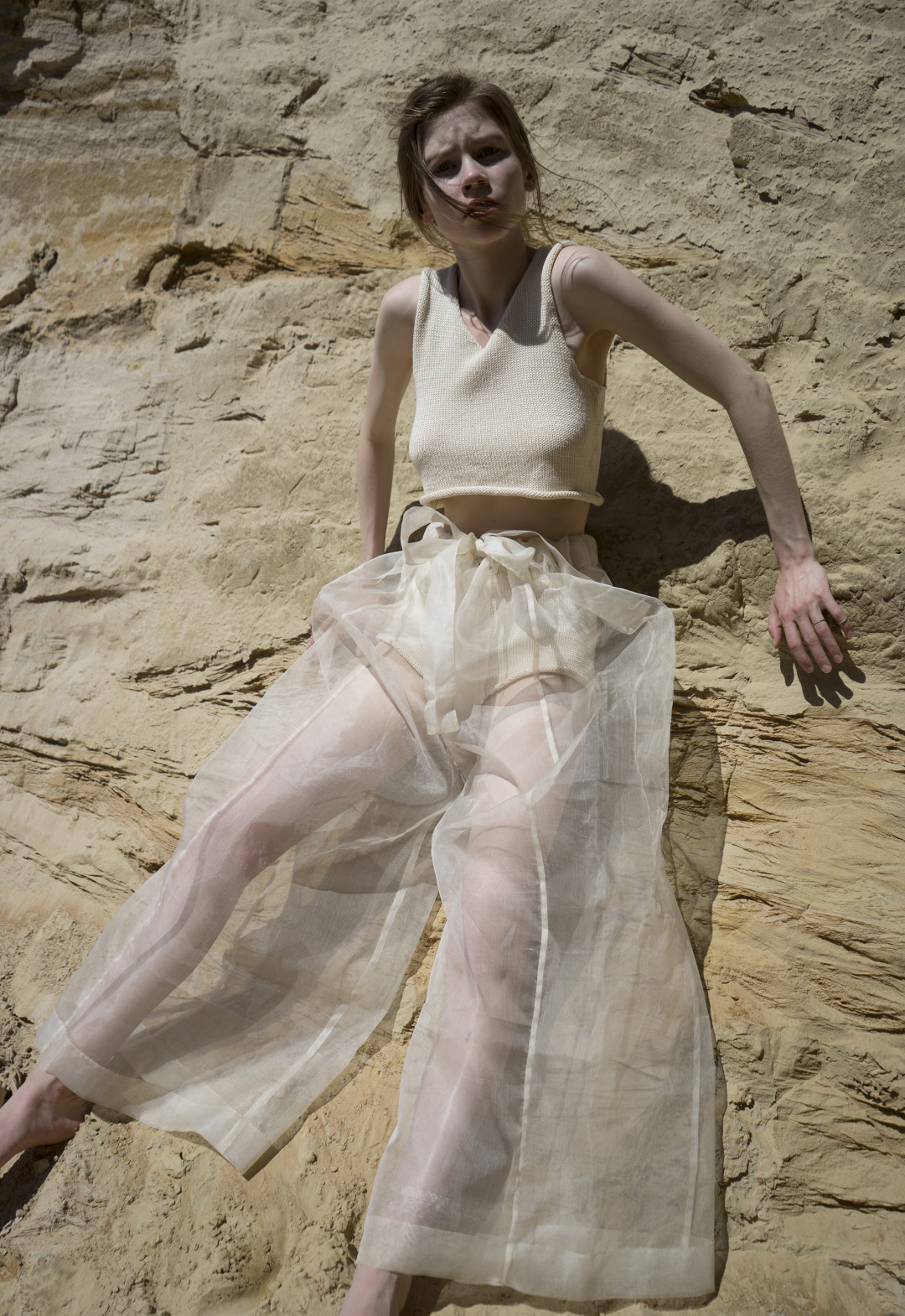 Если первая коллекция студентки Школы дизайна НИУ ВШЭ Арины Хаустовой была посвящена картинам Анри Матисса, то вторая — группе туристов, которые привозят из путешествий магниты, полотенца и памятные фотокарточки (все они нанесены на одежду ARSHA). Такую разницу в мудборде дизайнер объясняет полной трансформацией собственного взгляда на моду: поняв, что для жизни ей нужен минимальный набор базовых вещей, который показывает девушку настоящей (никаких пуш-апов, разрезов до пупка и мини-юбок, которые делают ноги визуально стройнее), Арина создала универсальную, агендерную и говорящую за себя одежду. Следующая коллекция ARSHA будет также продиктована личным опытом дизайнера: до новости о победе в конкурсе «Новые имена в моде» она отчислилась из университета, решив пойти в кулинарную школу, а теперь размышляет о том, как объединить свою страсть и к моде, и к еде.