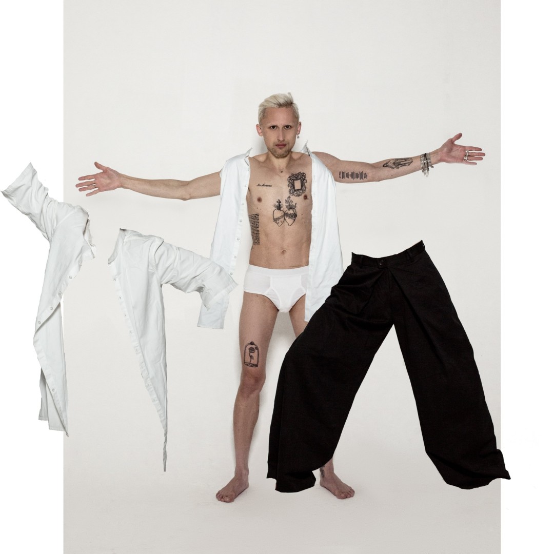 Русско-грузинский бренд TRUSTME STUDIO, основанный архитектором Артуром Васильевым, кинооператором Михаилом Пашкульским, графическим дизайнером Махо Гвилия и бренд-директором Наталией Гуляевой, выпустил только одну полноценную коллекцию, а ее уже носят Сергей Шнуров и певица Луна. Ребята базируются на деконструктивизме, гротеске и брутализме, но в отличие от вещей Maison Margiela и Ann Demeulemeester эти смирительные рубашки, толстовки с курящим черепом и футболки с Ховринской больницей можно носить не только на подиуме, но и в повседневной жизни. «Наших главных (метафизических) героев можно описать так: мальчики и девочки, читающие Йоргена Лета, обедающие в дорогом ресторане и любящие пересмотреть "Нимфоманку", — рассказывает Артур Васильев. — Но все это образно — TRUSTME STUDIO может носить любой, кто покупает дорогую одежду не только за бренд, но и за идею».