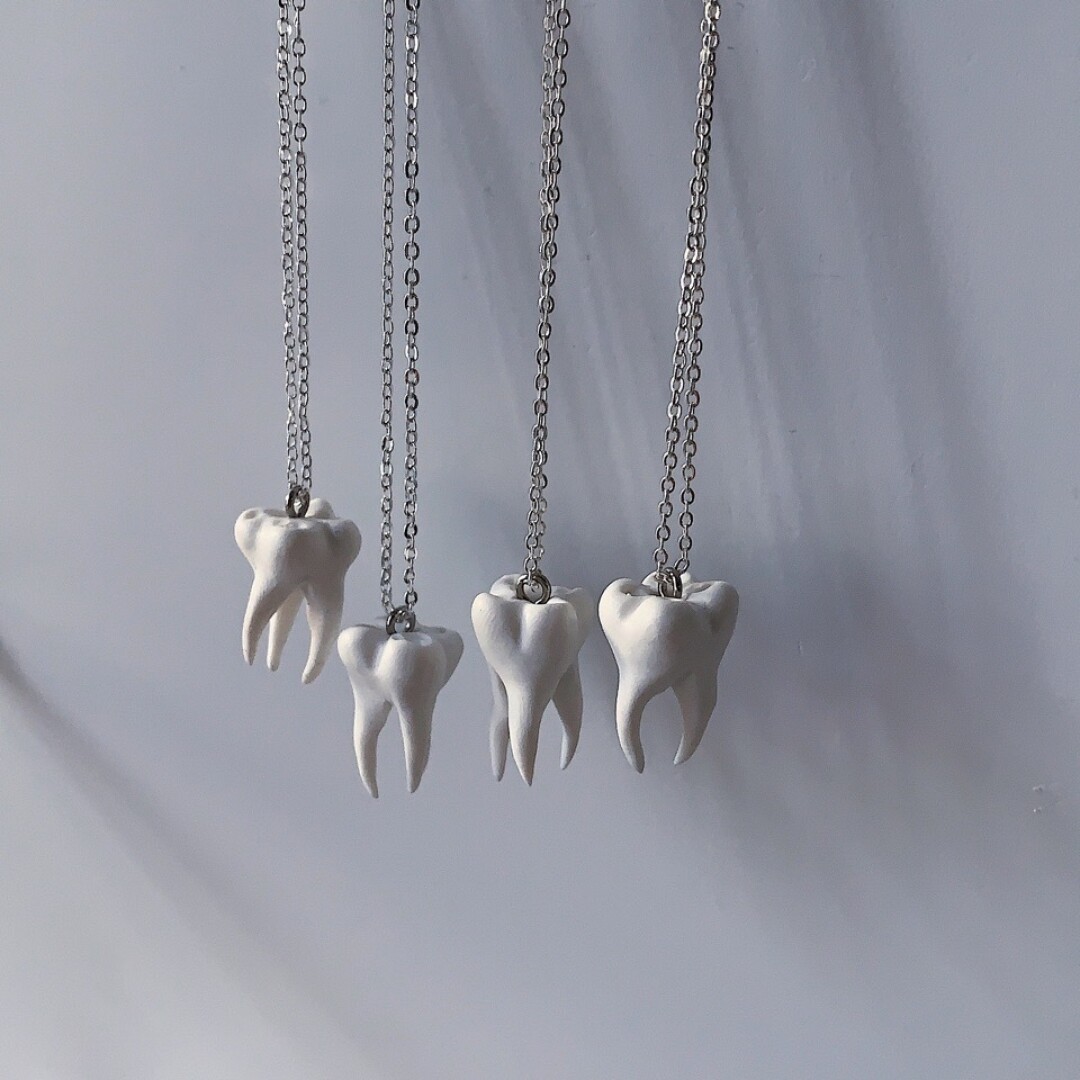 Раздаем панк-шик при помощи макабрического обвеса: за бабочкой-франкенштейном идем к ювелирам Midgard, за цветками-людоедами — к петербургским ювелирам 22.77, за бруталистскими кулонами в форме когтя Священного Беркута — к кыргызстанского ювелирному профи Rhoe Bermat. В память о мемориальных украшениях викторианской эпохи запасаемся зубастыми украшениями Idoll — в отличие от прототипа, они сделаны не из настоящих человеческих резцов, а всего лишь из полимерной глины.