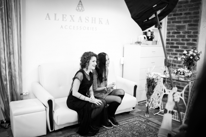 В шоу-руме A L E X A S H K A можно не только приобрести уникальные дизайнерские аксессуары, но и с пользой провести время. Весь декабрь, в преддверии нового года здесь будут проходить экспресс-фото-дни. Это отличное мероприятие для тех, кто хочет пообщаться с профессиональным стилистом и сфотографироваться в роскошном образе, созданным с его помощью. В сервисный пакет фото-дня также входит: аренда любого платья из шоурума, укладка и макияж от Make-up Bar Moloko. В результате девушки получают по два снимка от профессионального фотографа.