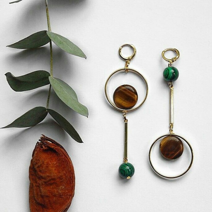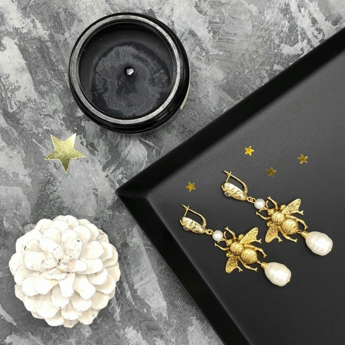 В ассортименте дизайнера есть как базовая линия классических подвесок из камней, так и более смелые украшения: серьги с позолоченными головами львов, винтажные латуневые пчелы, родированные геометрические лица