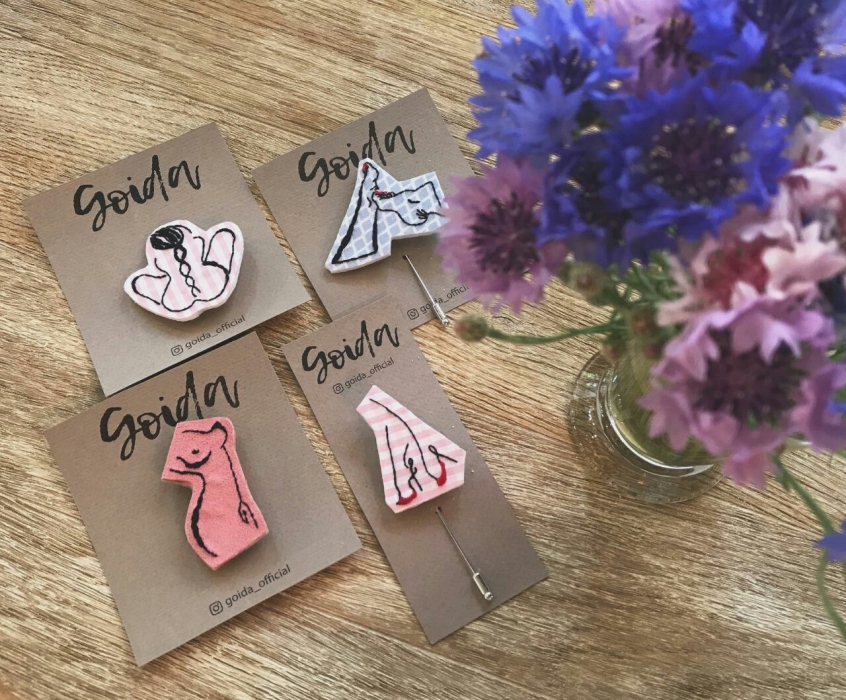Все броши выполнены с вышивкой ручной работы, а основным мотивом послужило для дизайнера женское тело как проявление природной сексуальности.