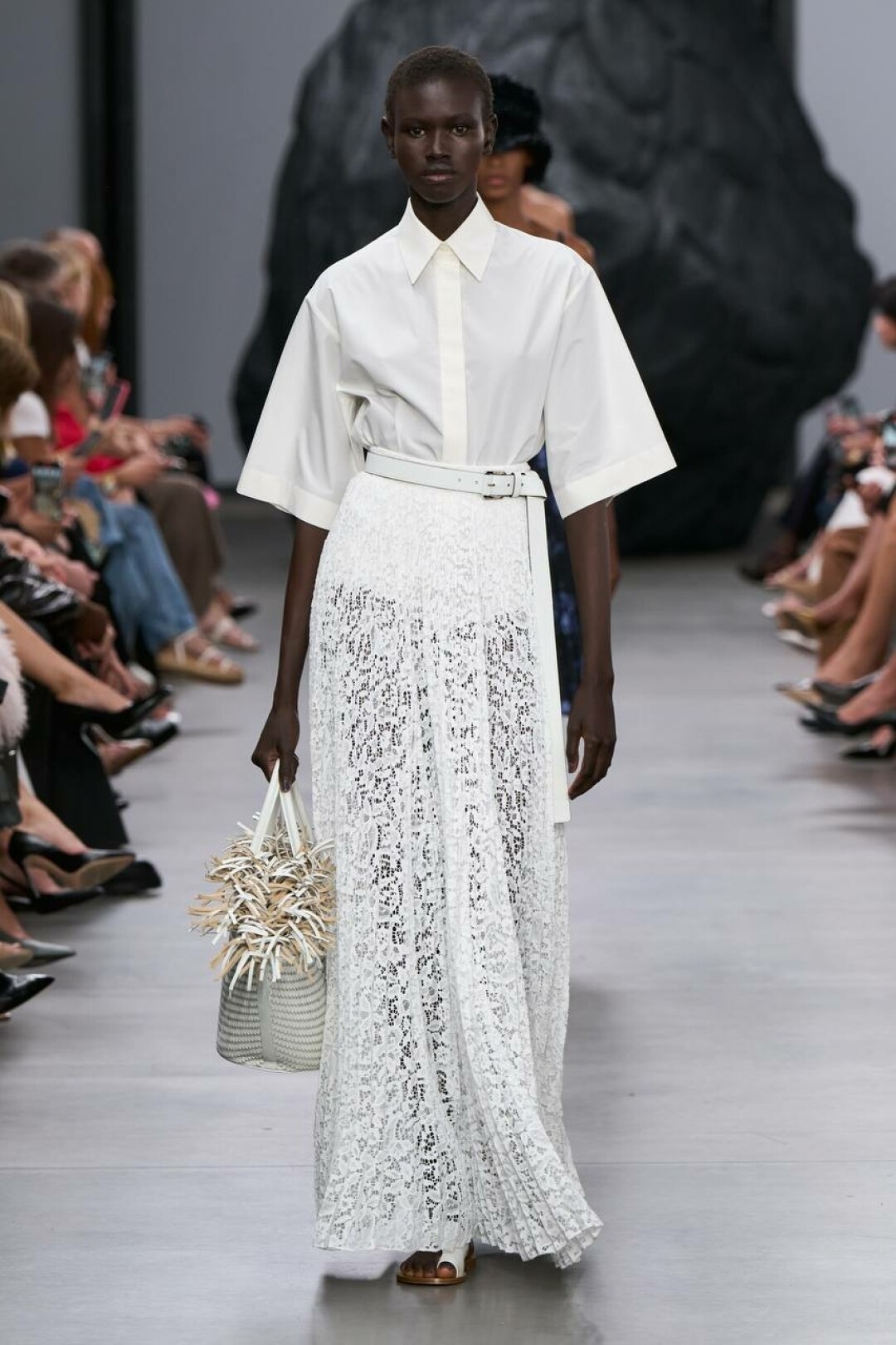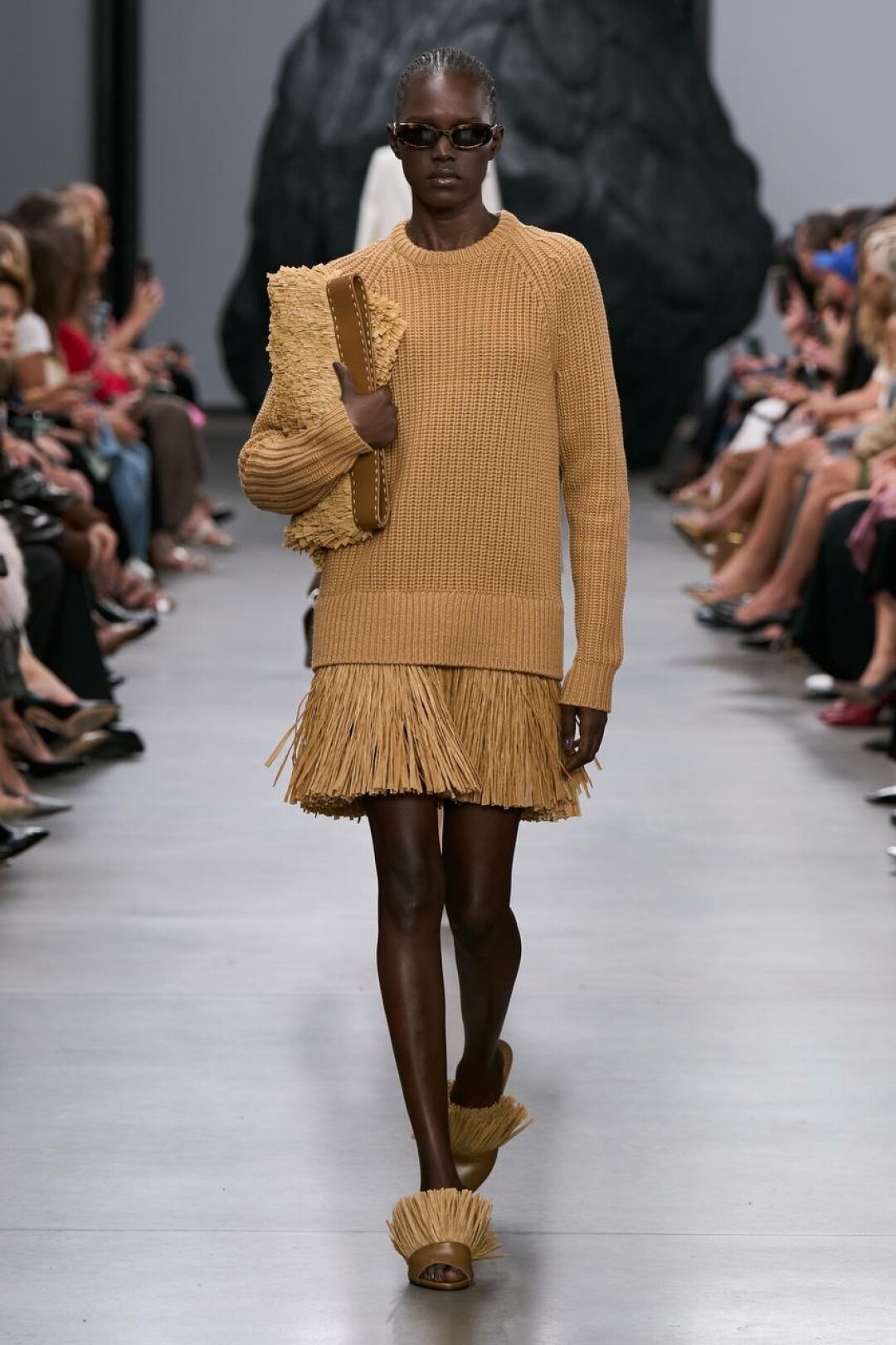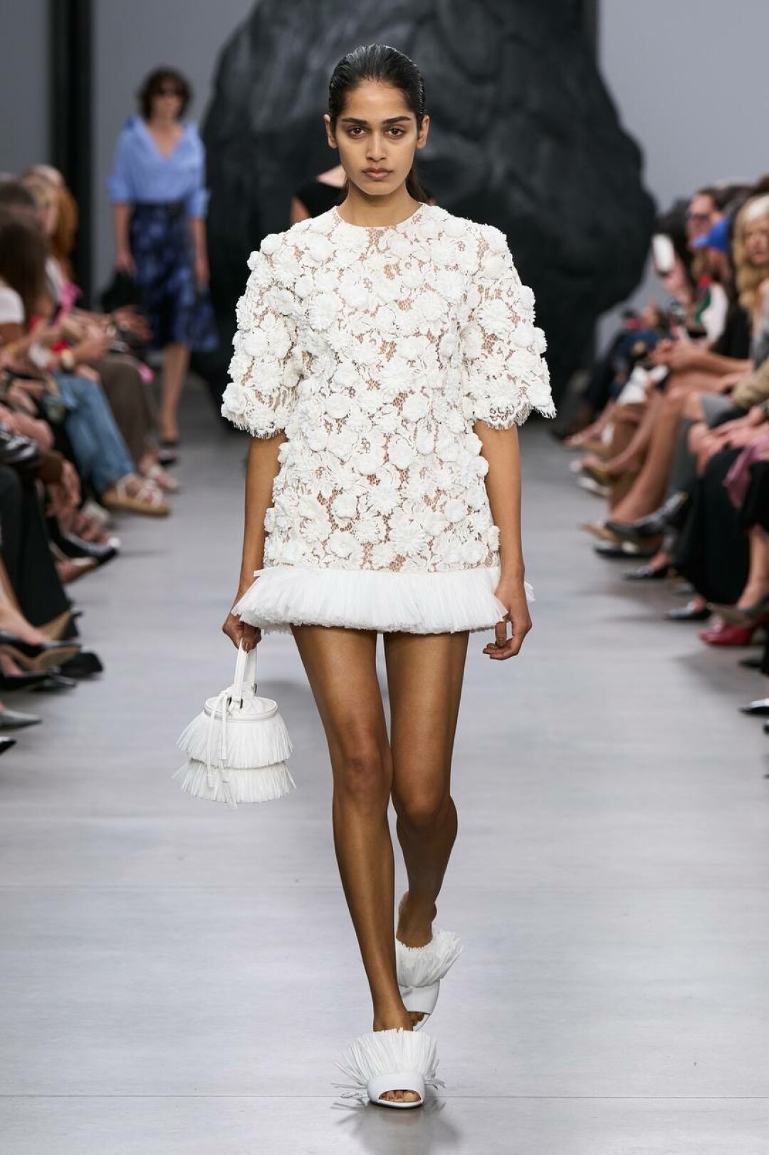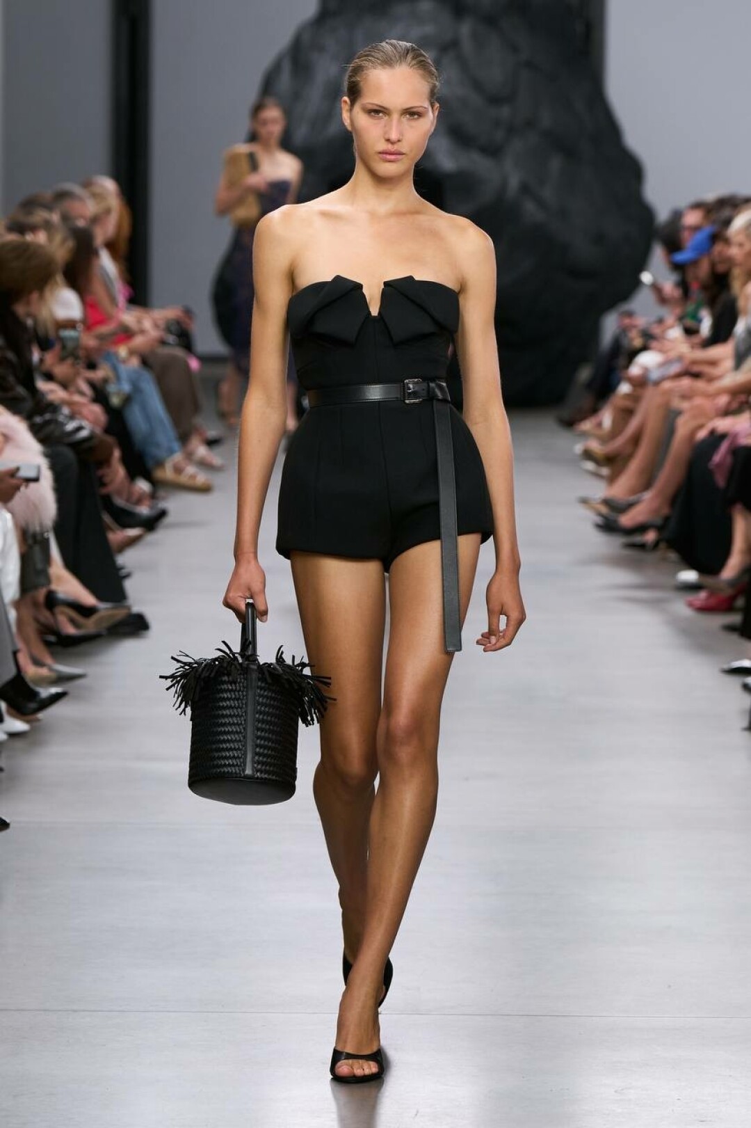 За атмосферу итальянских каникул отвечали рафия — от микро-корзинок с бахромой до панамок и соломенных юбок, кружево (фиксируем гипертренд) в тандеме с приталенными джемперами, комбинезоны, напоминающие ретро-купальники впридачу к артизанальным платьям из хлопкового шитья и гипюровым макси.