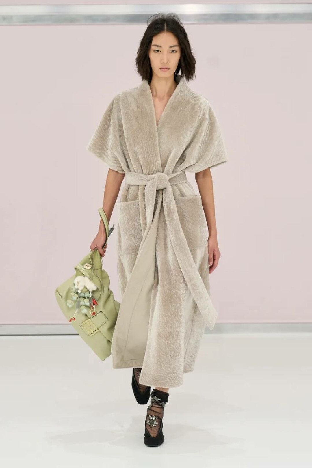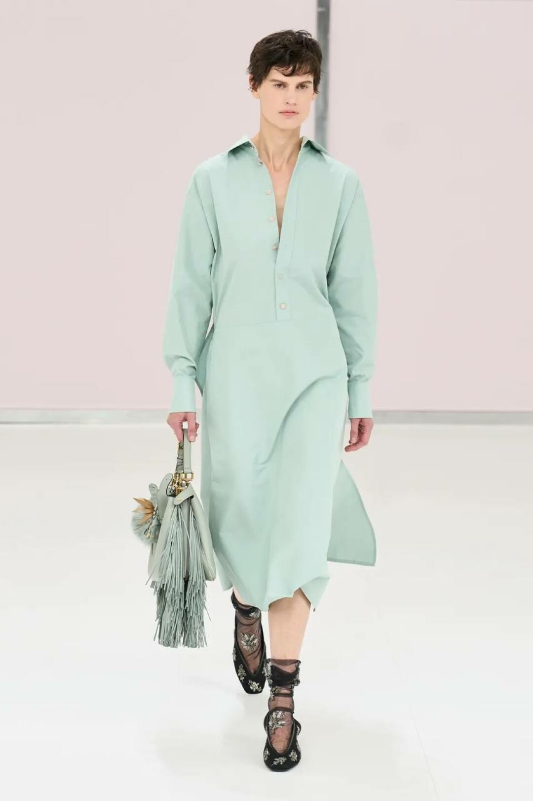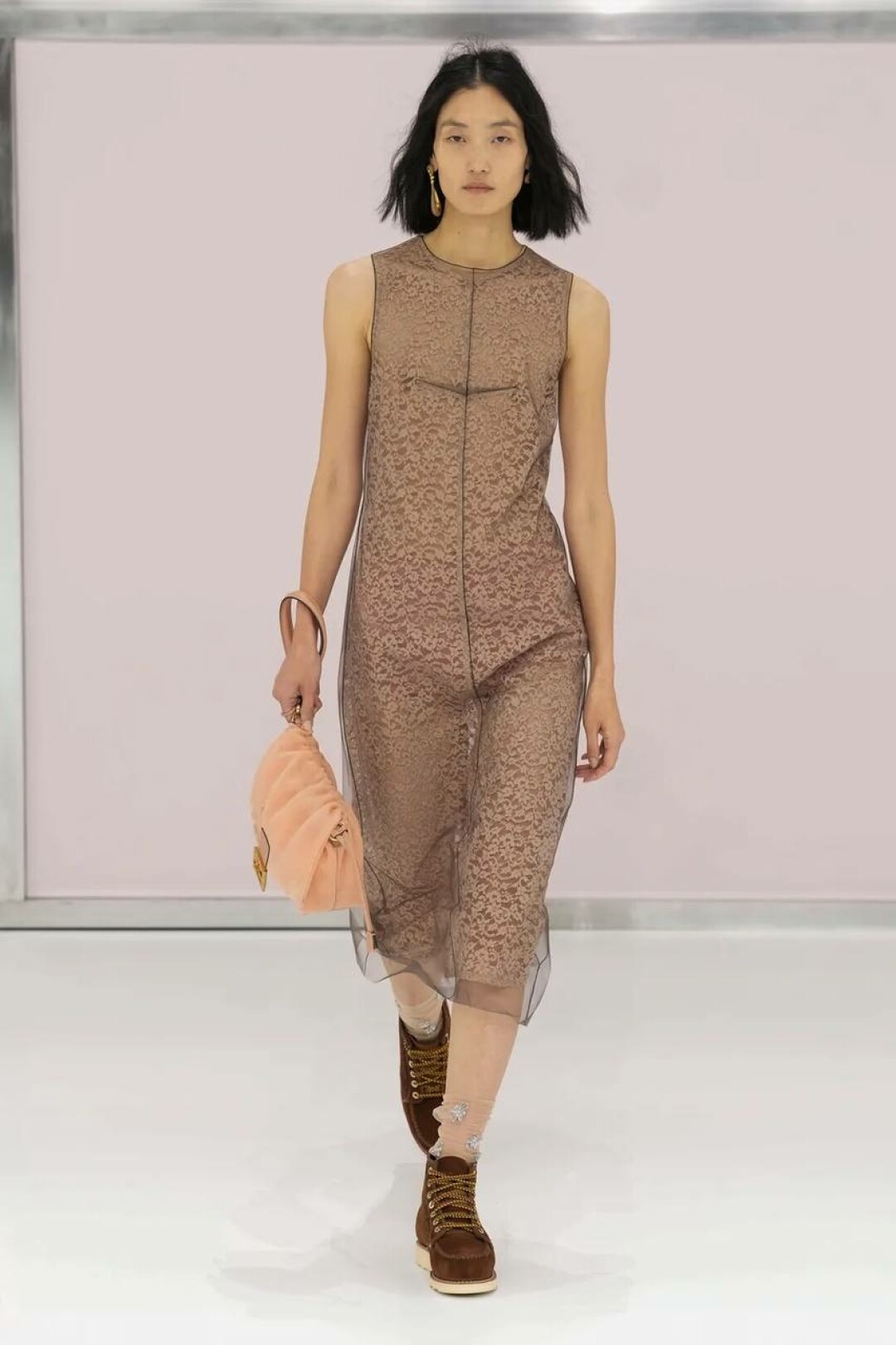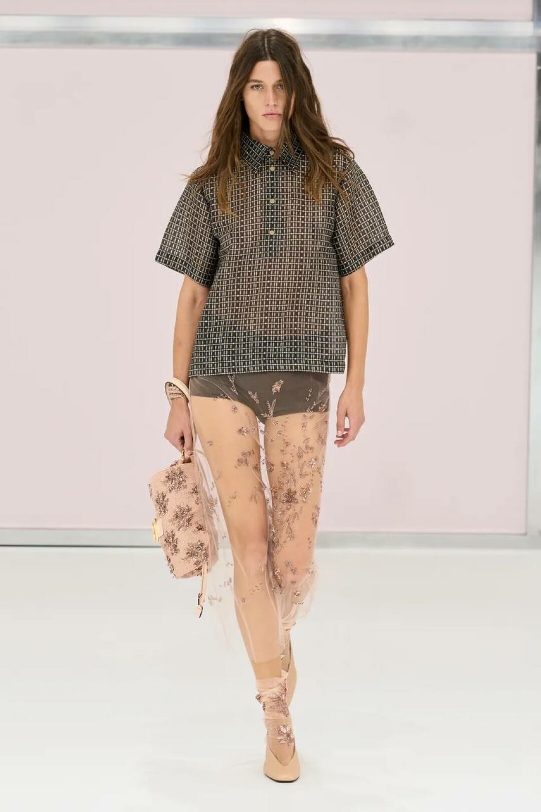 Готовимся лихо играть с текстурами: носим полупрозрачные туники-кофры и черные фартуки поверх кружевных платьев, дополняем рубашки акцентными майками и миксуем брюки с будуаркорными комбинациями. Достаем из 2010-х шнурованные кожаные ботинки, а из «ревущих двадцатых» в честь юбилея Fendi — ажурные коктейльные платья (с кружевом и без). В авангардном порыве примеряем юбки в виде маек-перевертышей, а во время ситуативного ориенталистского любопытства — (полу)невидимые наряды в китайских узорах.