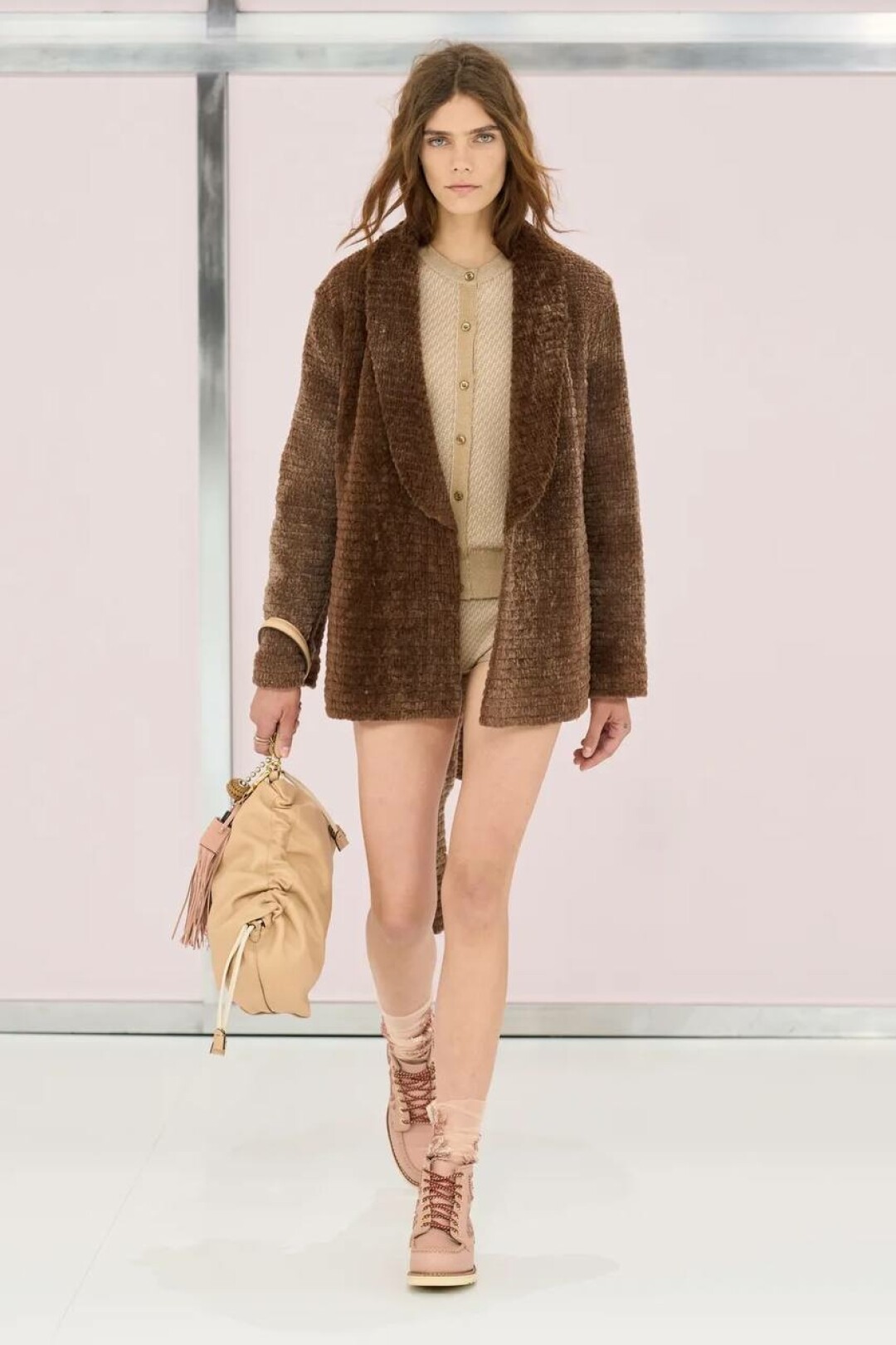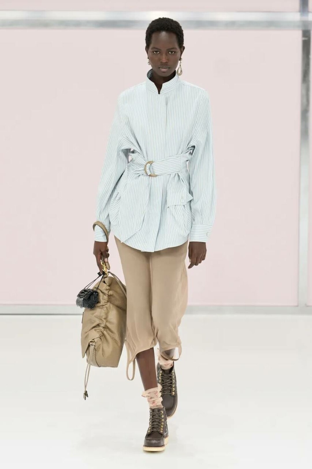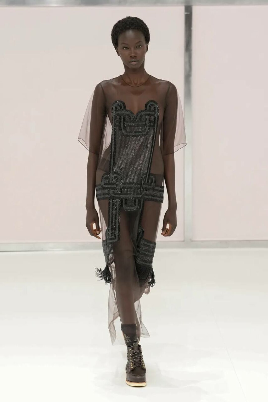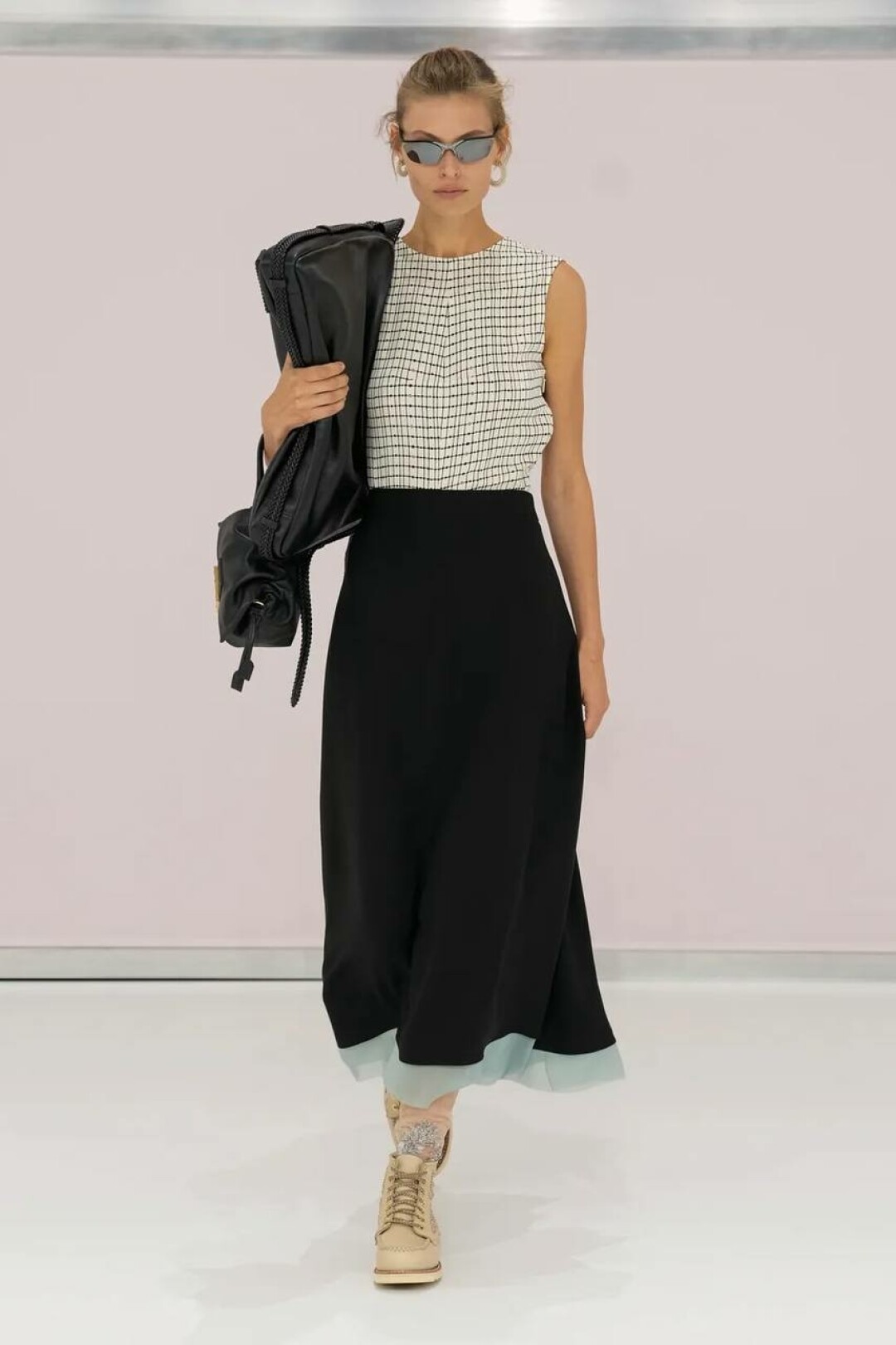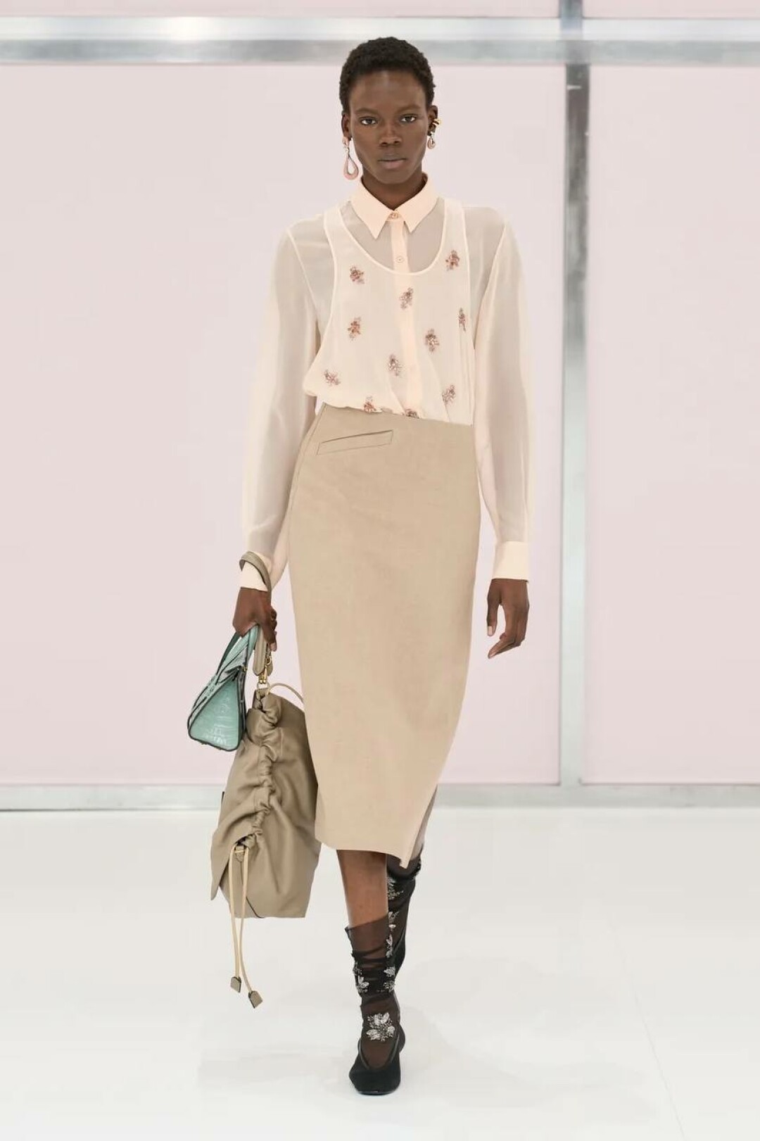 Готовимся лихо играть с текстурами: носим полупрозрачные туники-кофры и черные фартуки поверх кружевных платьев, дополняем рубашки акцентными майками и миксуем брюки с будуаркорными комбинациями. Достаем из 2010-х шнурованные кожаные ботинки, а из «ревущих двадцатых» в честь юбилея Fendi — ажурные коктейльные платья (с кружевом и без). В авангардном порыве примеряем юбки в виде маек-перевертышей, а во время ситуативного ориенталистского любопытства — (полу)невидимые наряды в китайских узорах.