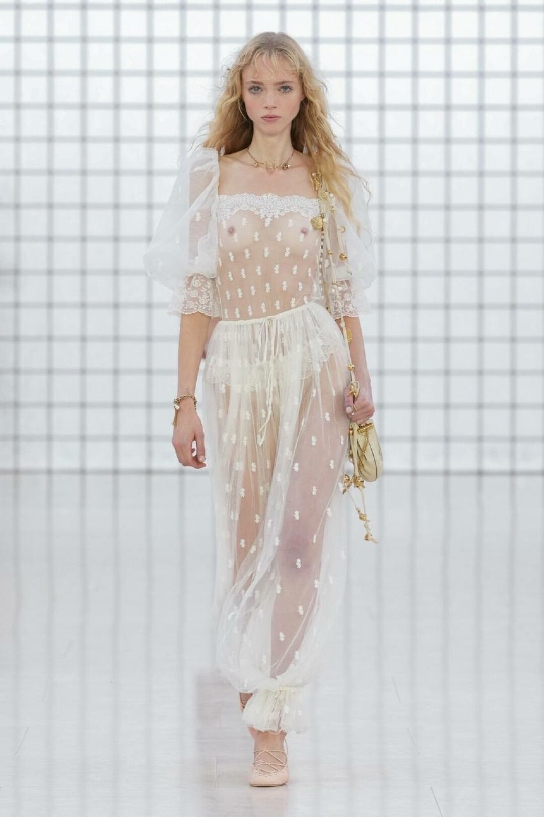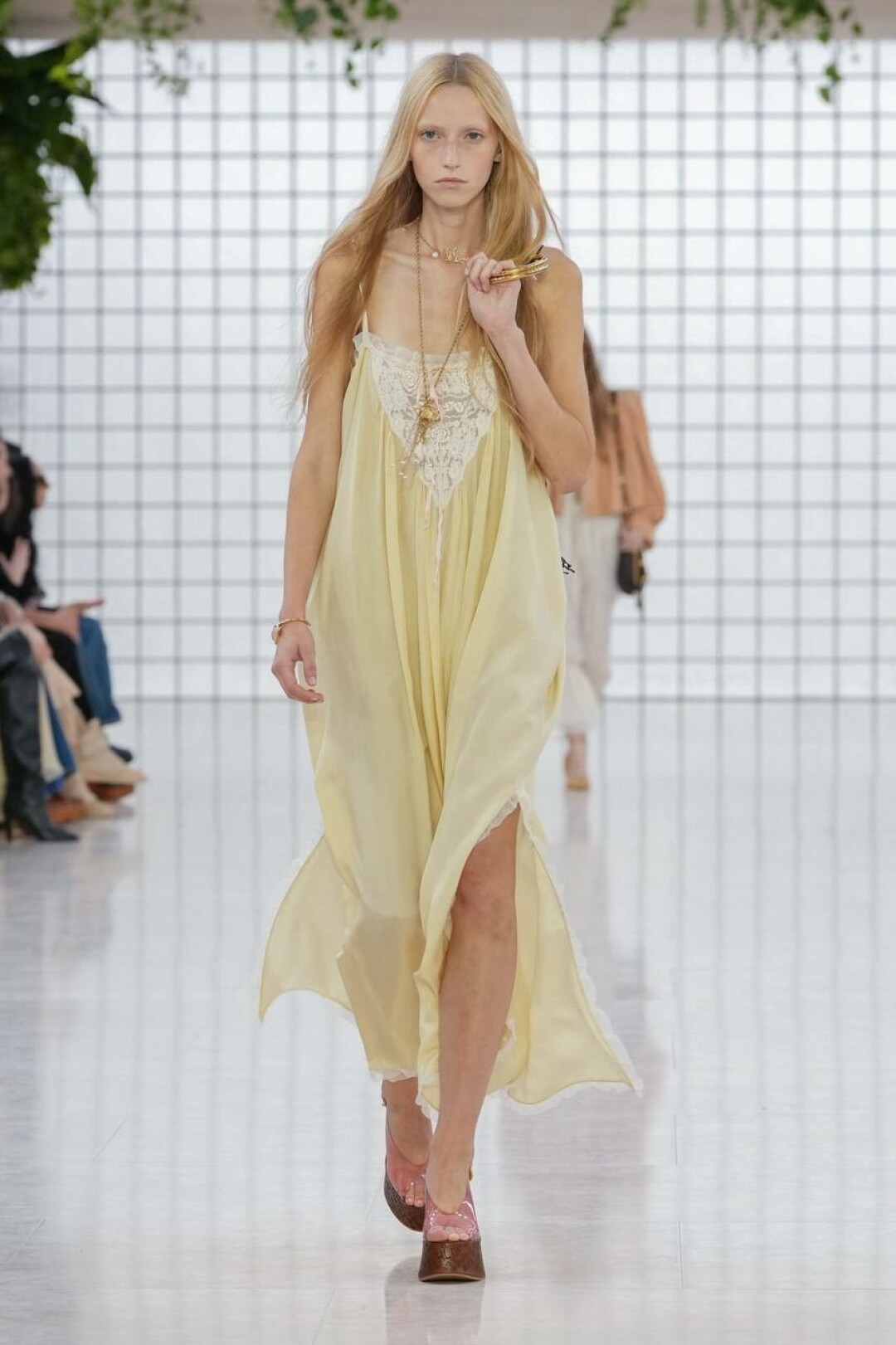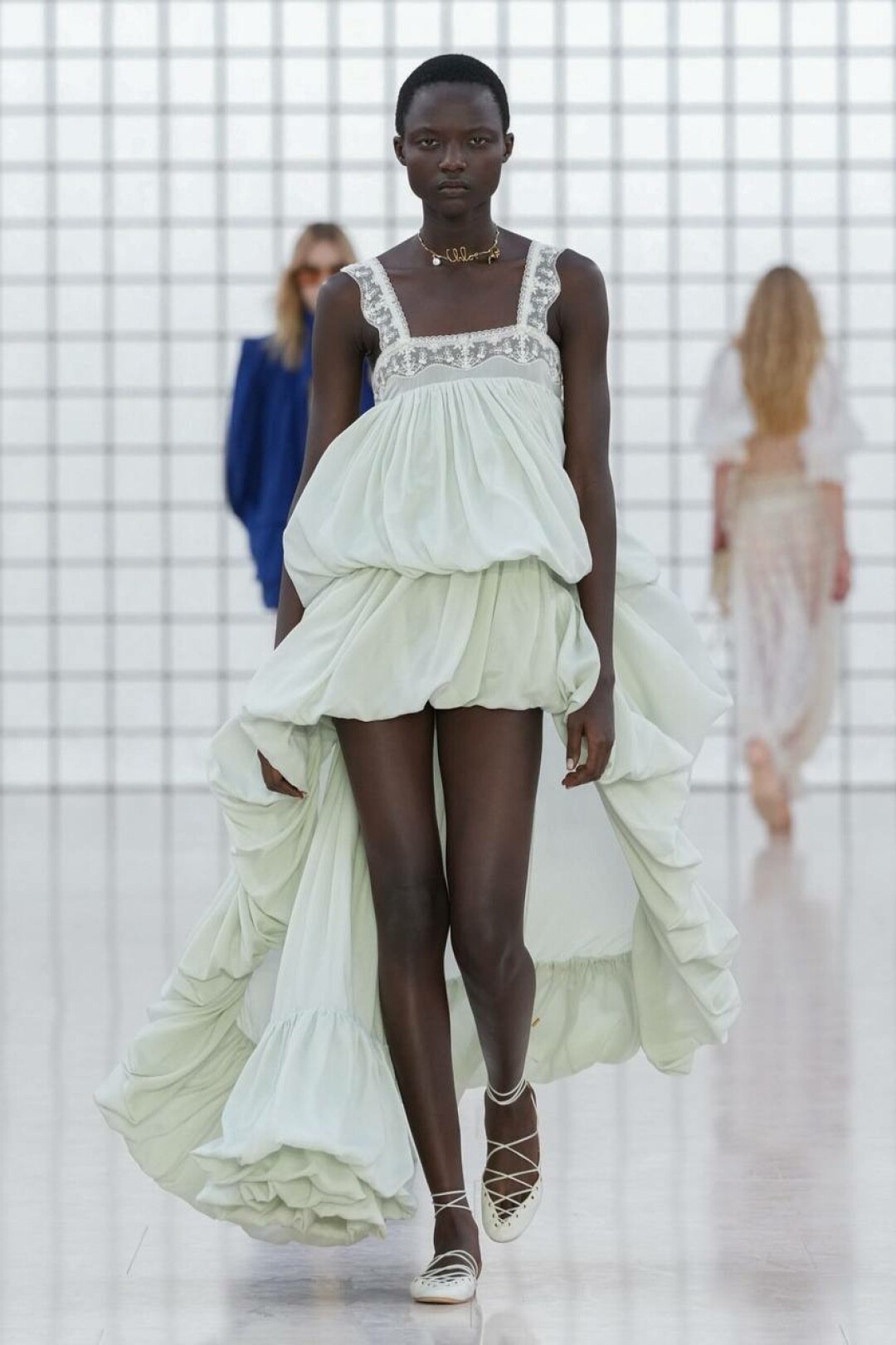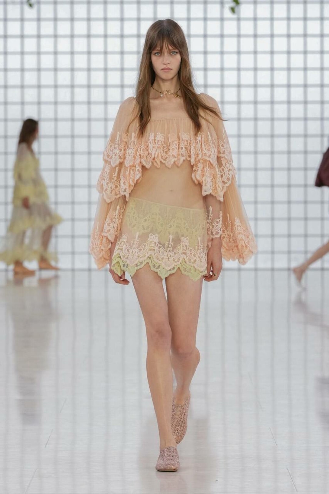 Чемена Камали продолжает экспериментировать с шифоном, оборками и кружевом и настойчиво следует бохо-вектору, взятому в прошлом, дебютном, показе Chloe. Несмотря на явные самоаллюзии коллекция — не попытка сыграть на предыдущем успехе, а гармоничное продолжение начатой в осенне-зимнем сезоне истории. Смотрим второй (спойлер: удачный!) показ Chloe под руководством Чемены Камали и фиксируем главные хайлайты.