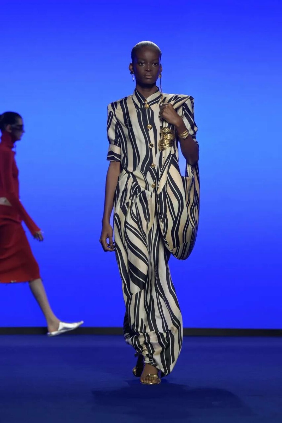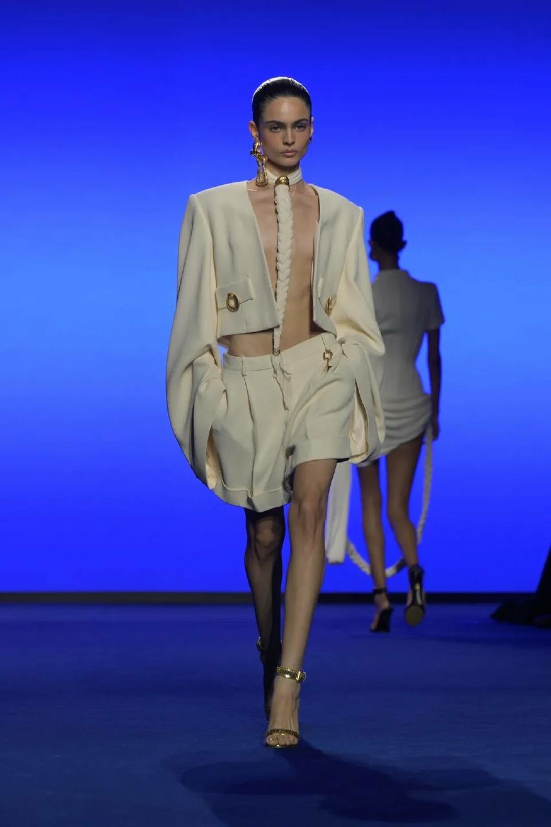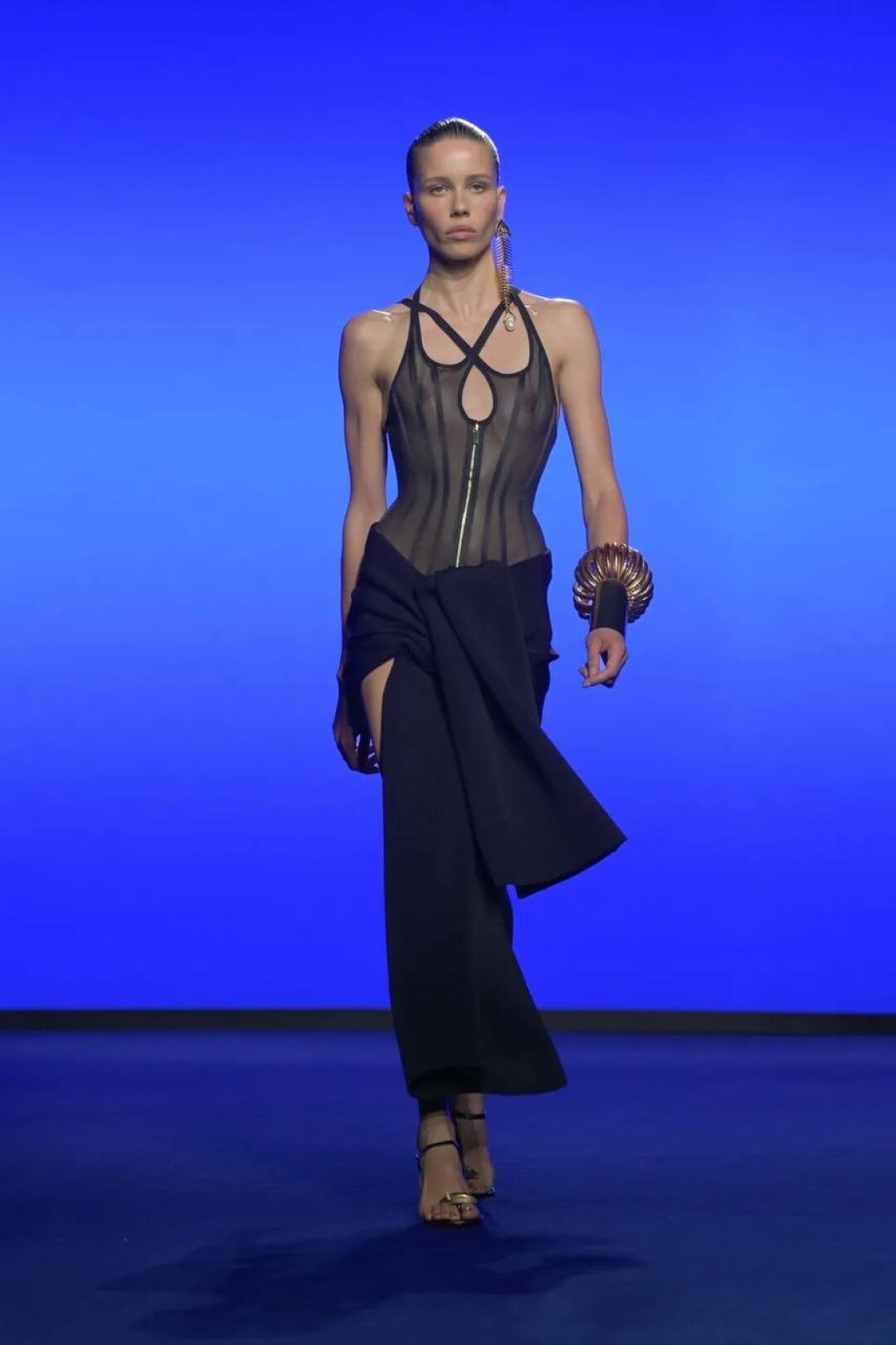 Дэниел Розберри поженил сюрреализм Эльзы Скиапарелли и вайбы Y3K — получилась футуристичная версия Schiaparelli для винтажек будущего (читай: для сценических луков Руби Рода из «Пятого элемента»!).