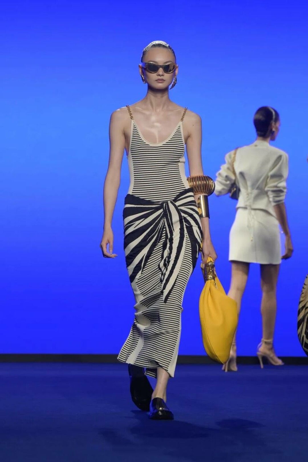 Готовимся разыскивать на ресейле джинсы-декольте, боди с эластичными корсетами, цветоные платья в пайетках (тренд!), рельефные мюли, анималистичные зеброкостюмы (перекочевали в ready-to-wear шоу из летнего кутюра!) и коктейльные мини-поло, украшенные шлейфом-спиралью в виде хлыста. Помимо флорального паттерна, будем охотиться за клетчато-полосатыми комплектами перламутровыми комбинациями на невидимых бретелях.